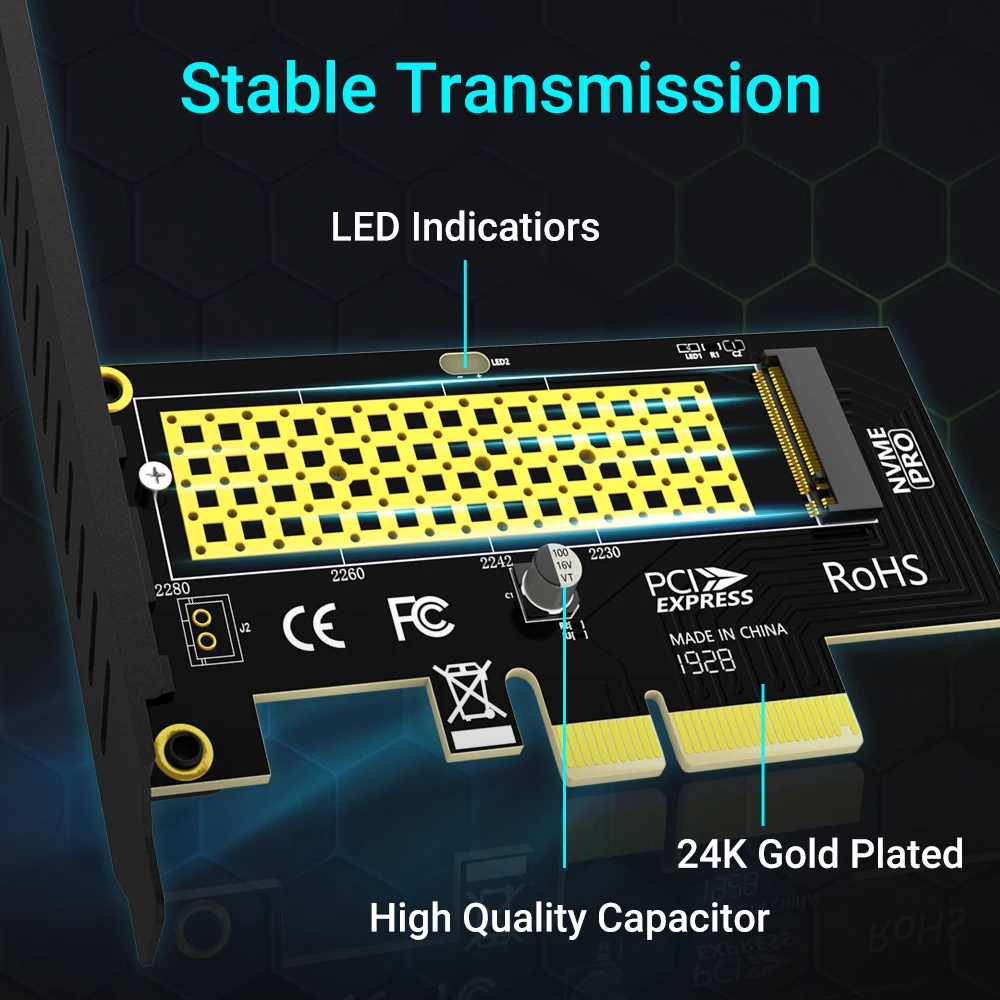 Tarjeta adaptadora JEYI M.2 NVME a PCI Express 4.0 x4, adaptador SSD de 64 Gbps compatible con convertidor 2280 2260 2242 2230 a PCI Express de escritorio Compatible con PCI-E X4 X8 X16