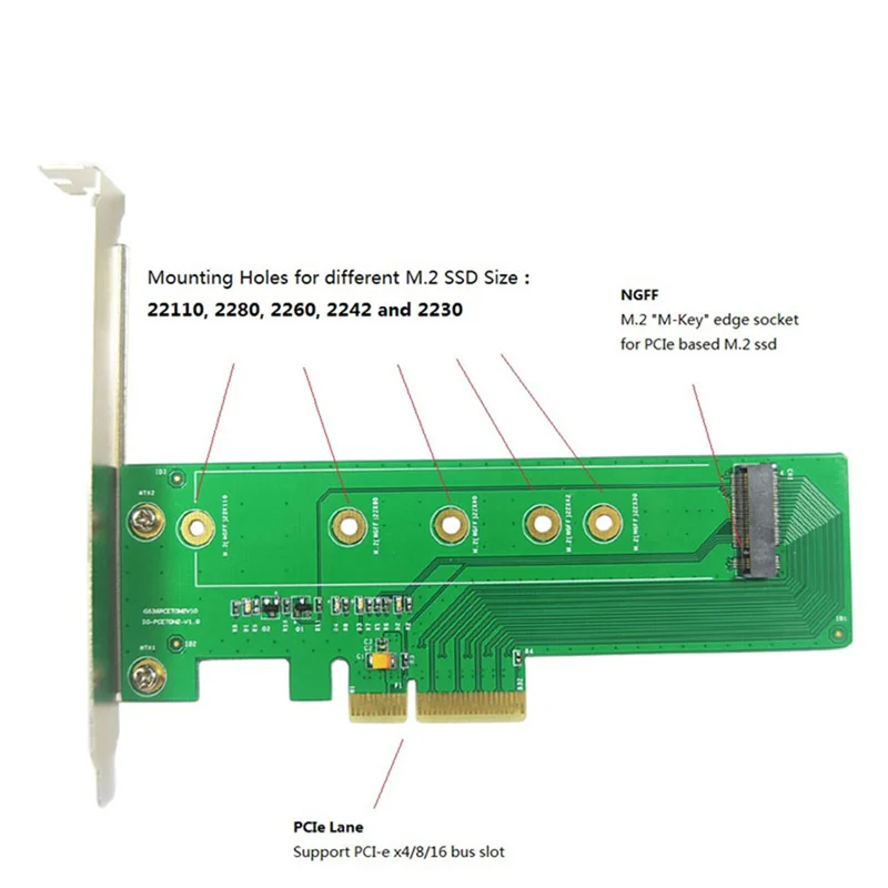 Comprar Tarjeta adaptadora M.2 M Key NVMe SSD PCIe 4,0 X4, compatible con tamaño completo como 22110, 2280, 2260, 2242, 2230, para minería BTC