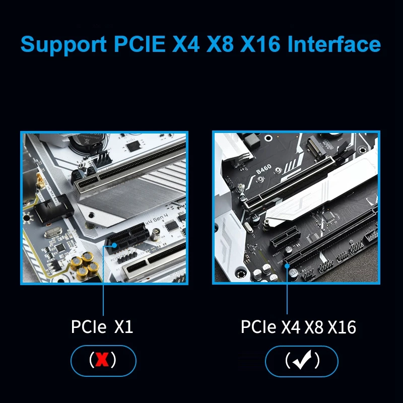 Este producto se inserta en la ranura PCIE X4 o PCIE X8 o PCIE X16 de la placa base, es decir, la ranura de la tarjeta gráfica de la placa base. No lo inserte en la ranura PCI por error. ¡Los errores pueden quemar la placa base, la tarjeta adaptadora y su SSD!