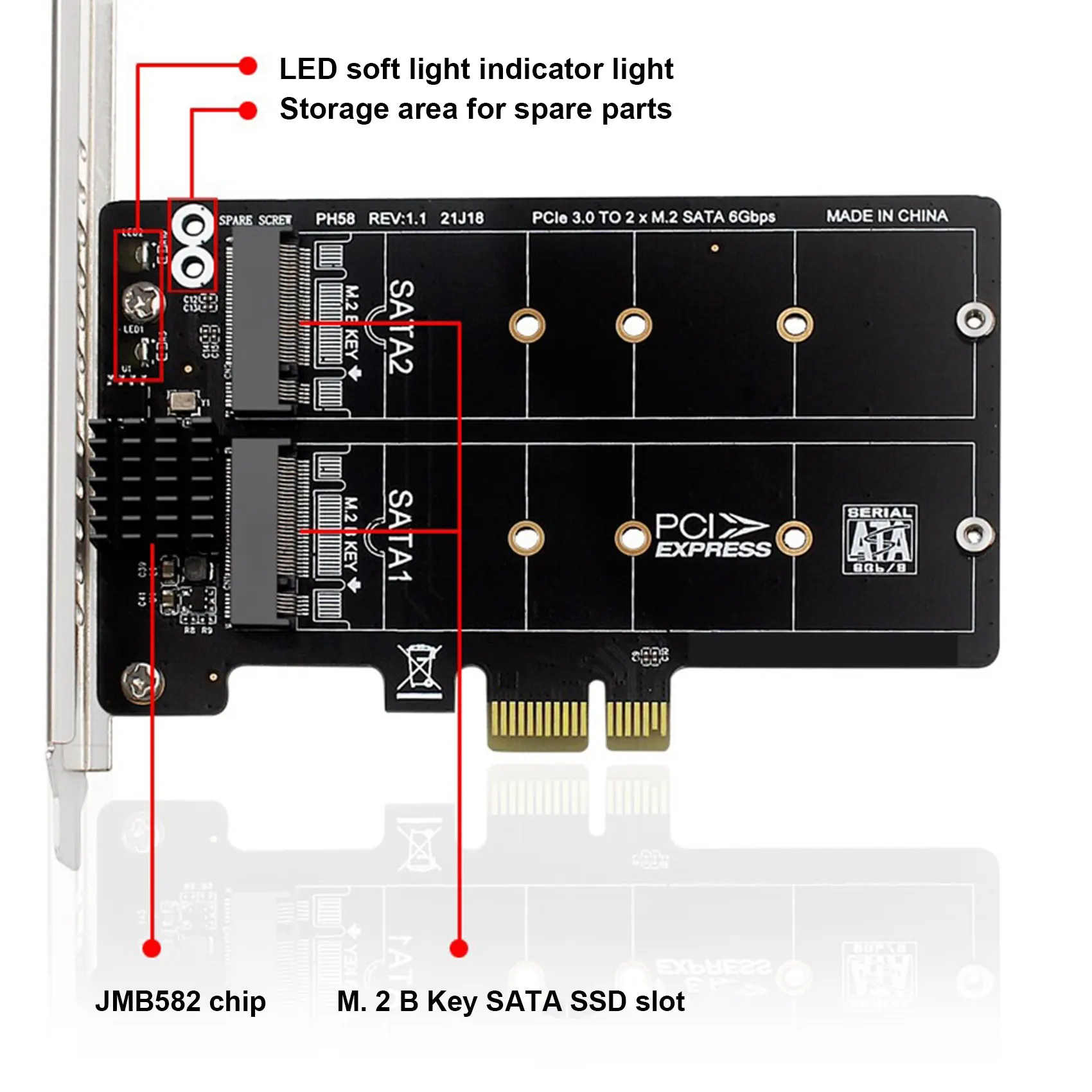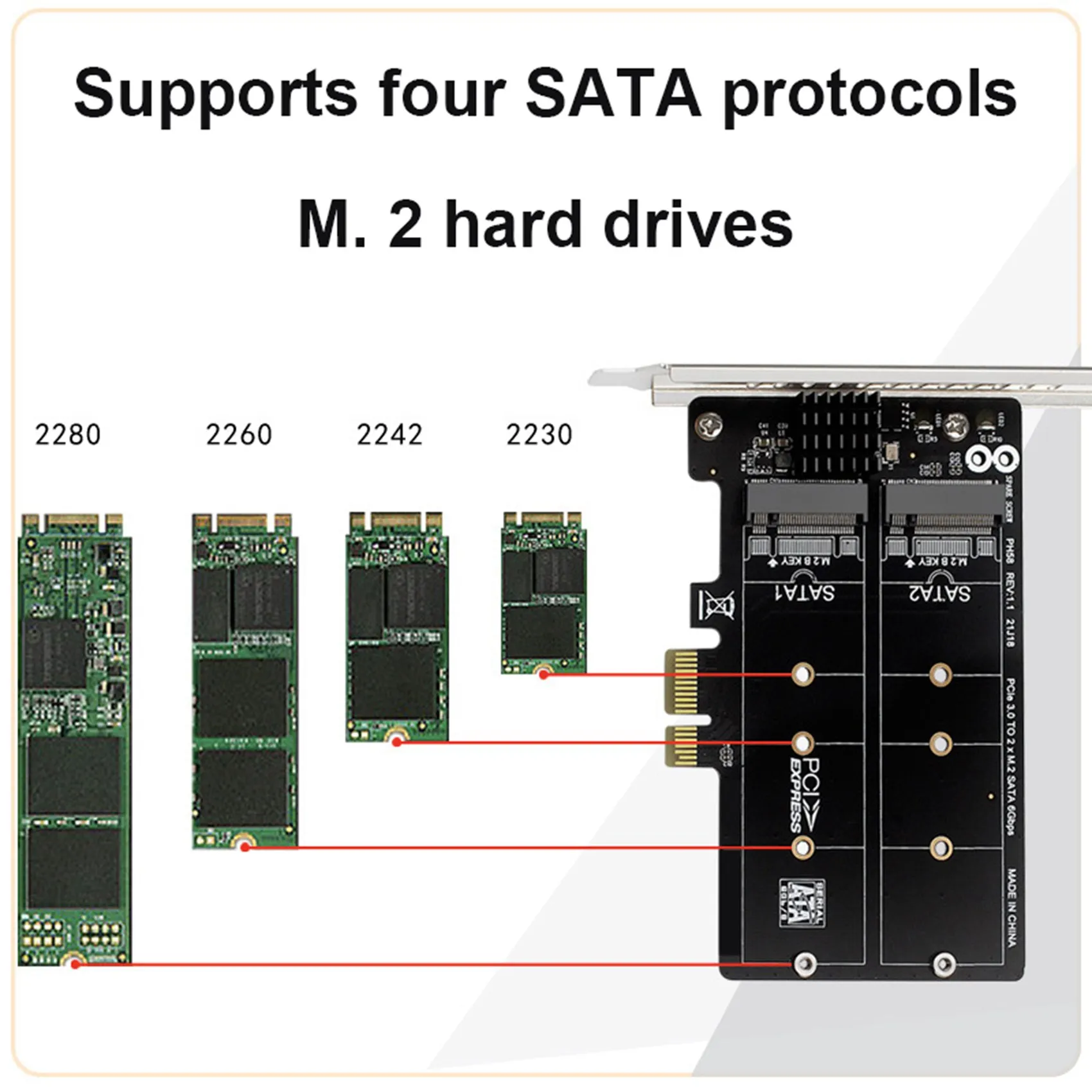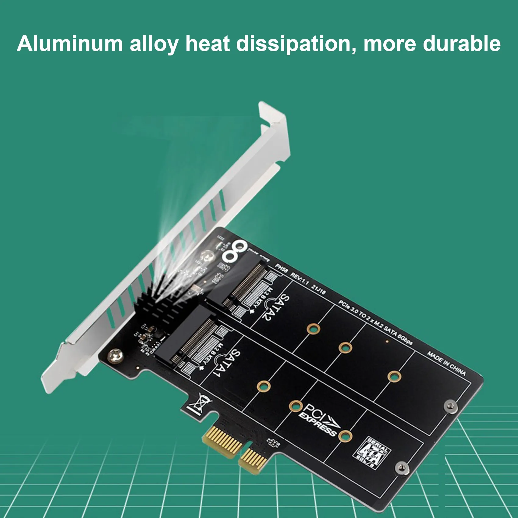 Comprar Tarjeta adaptadora M.2 SATA a PCIE, tarjeta de matriz de doble disco, tarjeta de expansión RAID PCIEX1 a NGFF M2 SATA6G Riser