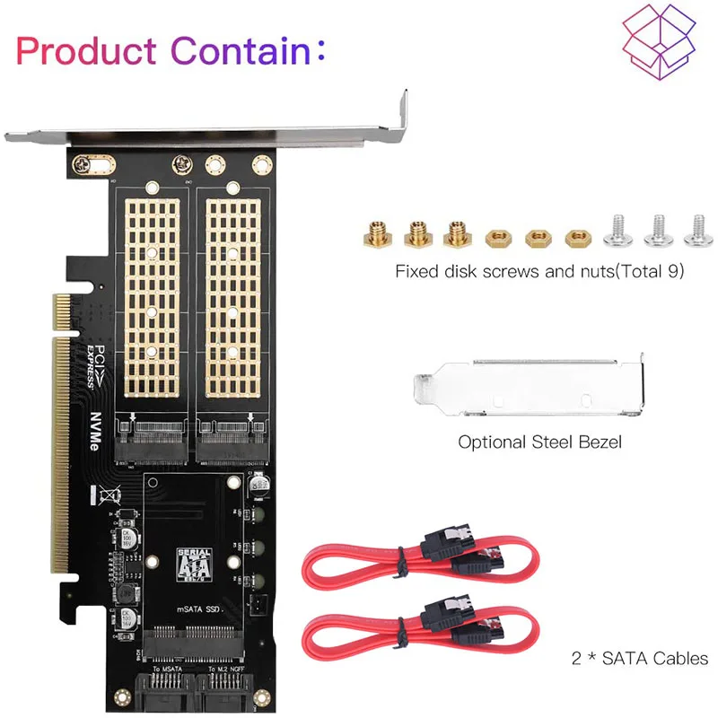 Nombre del producto: PCIE X16 a m.2 M Key NVME SSD + m.2 B Key SATA SSD + mSATA SSD