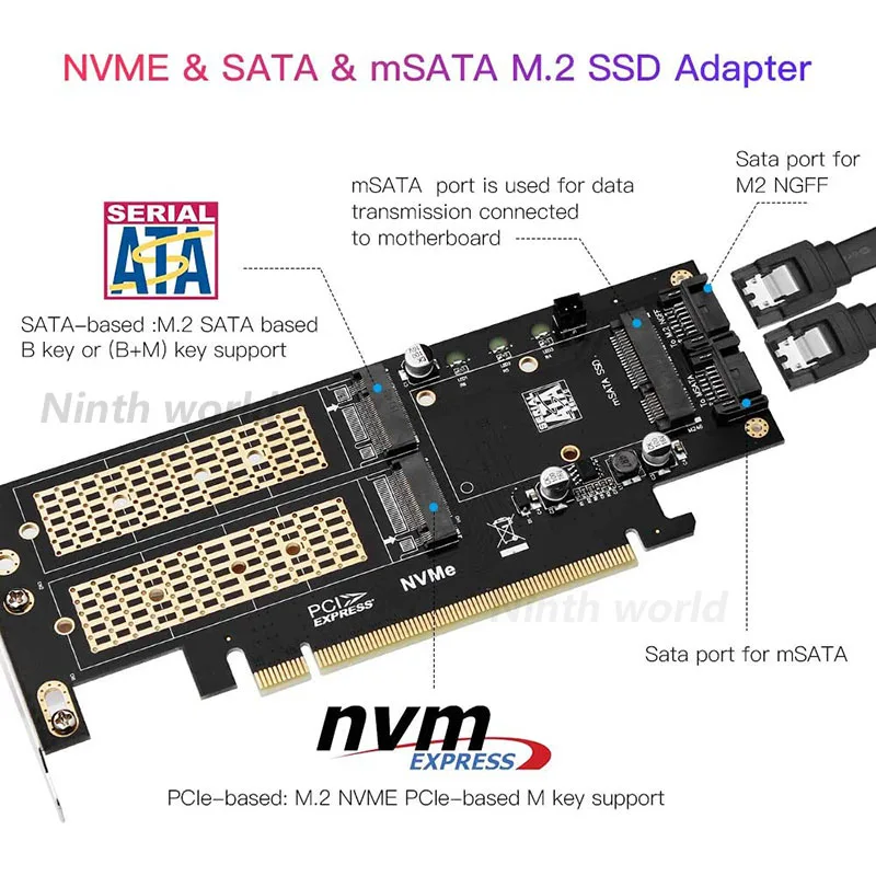 Nombre del producto: PCIE X16 a m.2 M Key NVME SSD + m.2 B Key SATA SSD + mSATA SSD