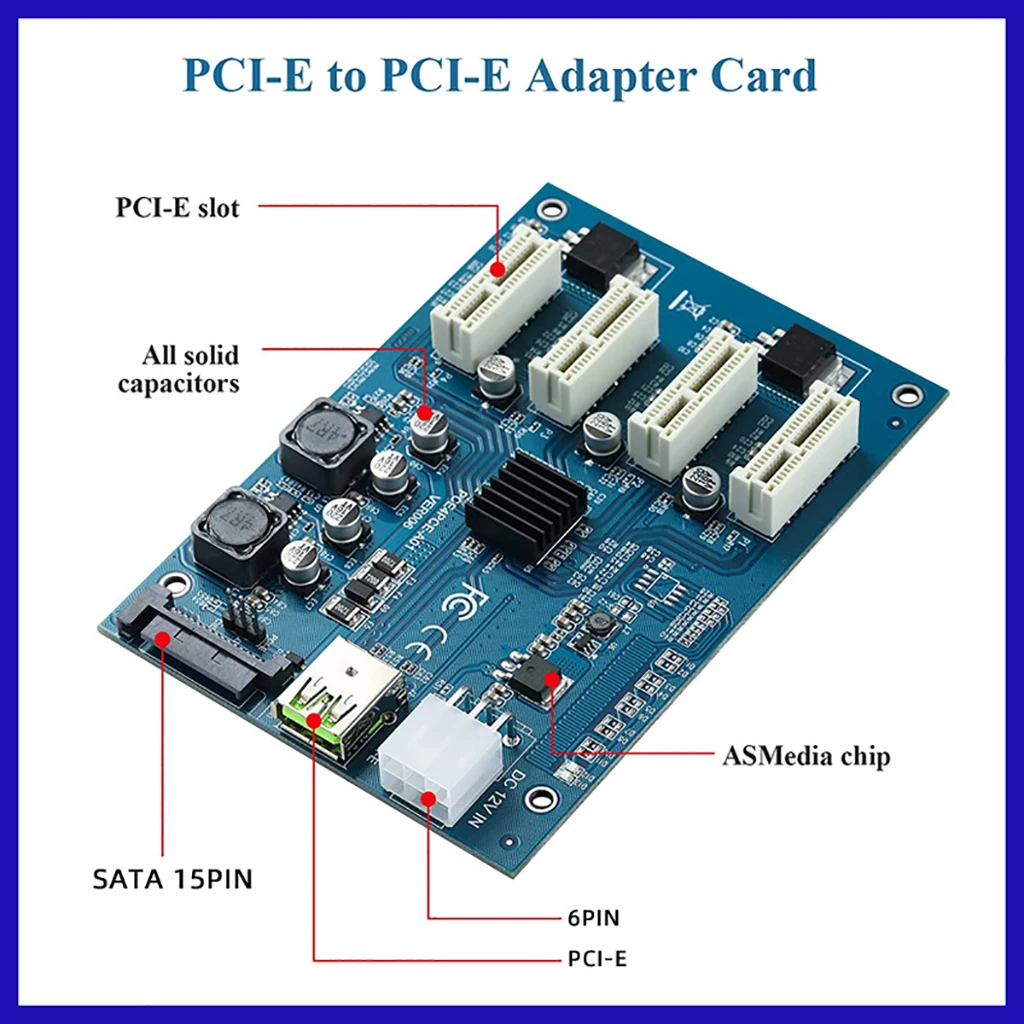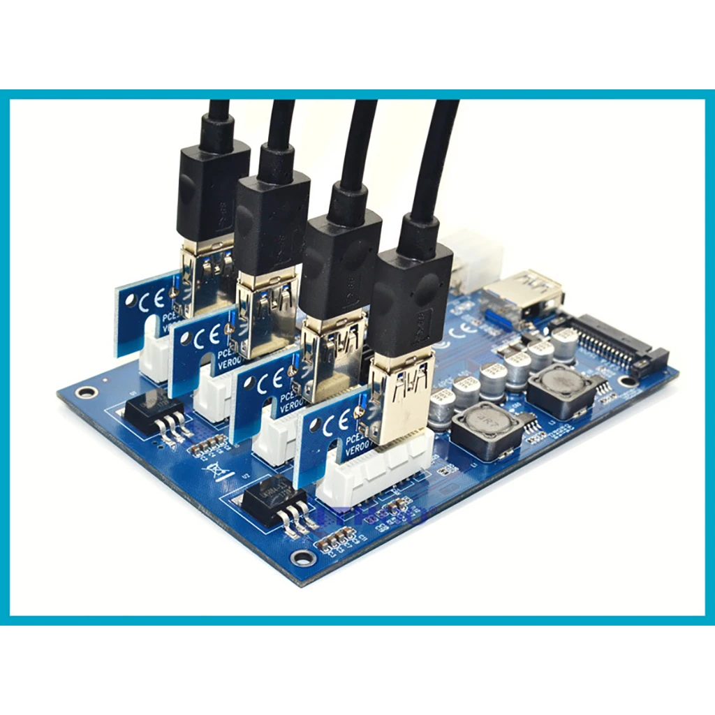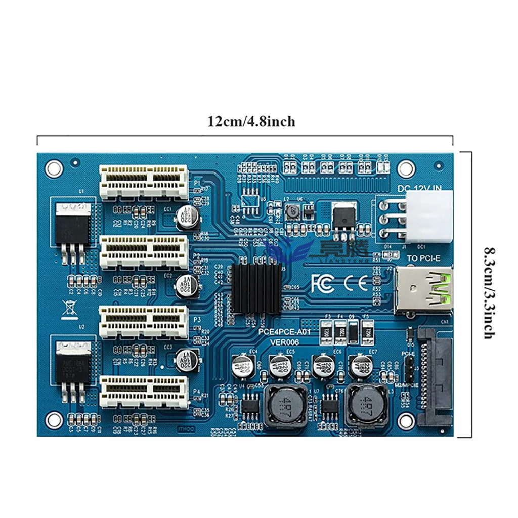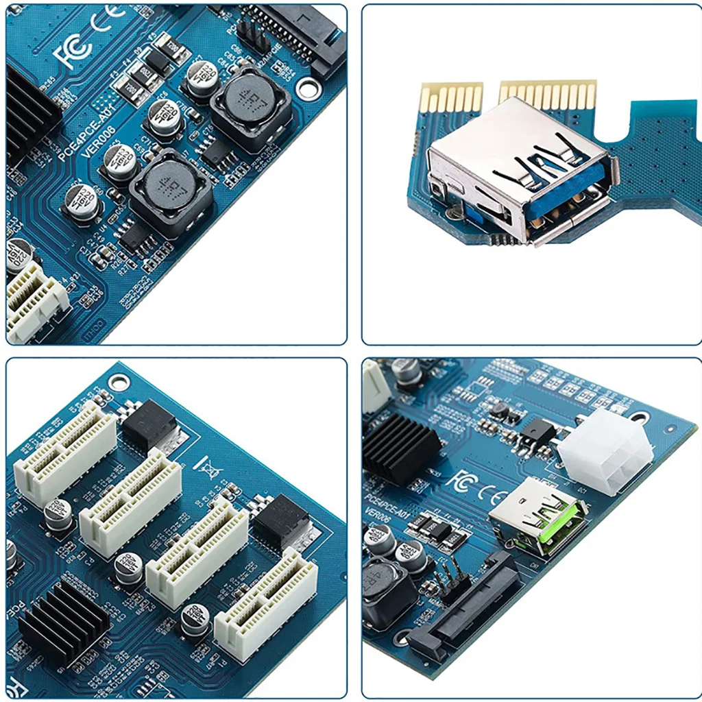 Comprar Tarjeta adaptadora PCI-E 1X a PCIE de 4 ranuras, tarjeta elevadora de expansión PCI Express, adaptador de ranura PCIe de 1 a 4, elevador con puerto de 6 pines/SATA de 15 pines