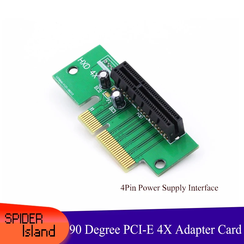 Comprar Tarjeta adaptadora PCI-E 4X de 90 grados, convertidor Horizontal con tarjeta de interfaz de fuente de alimentación de 4 pines, PCIe 4X