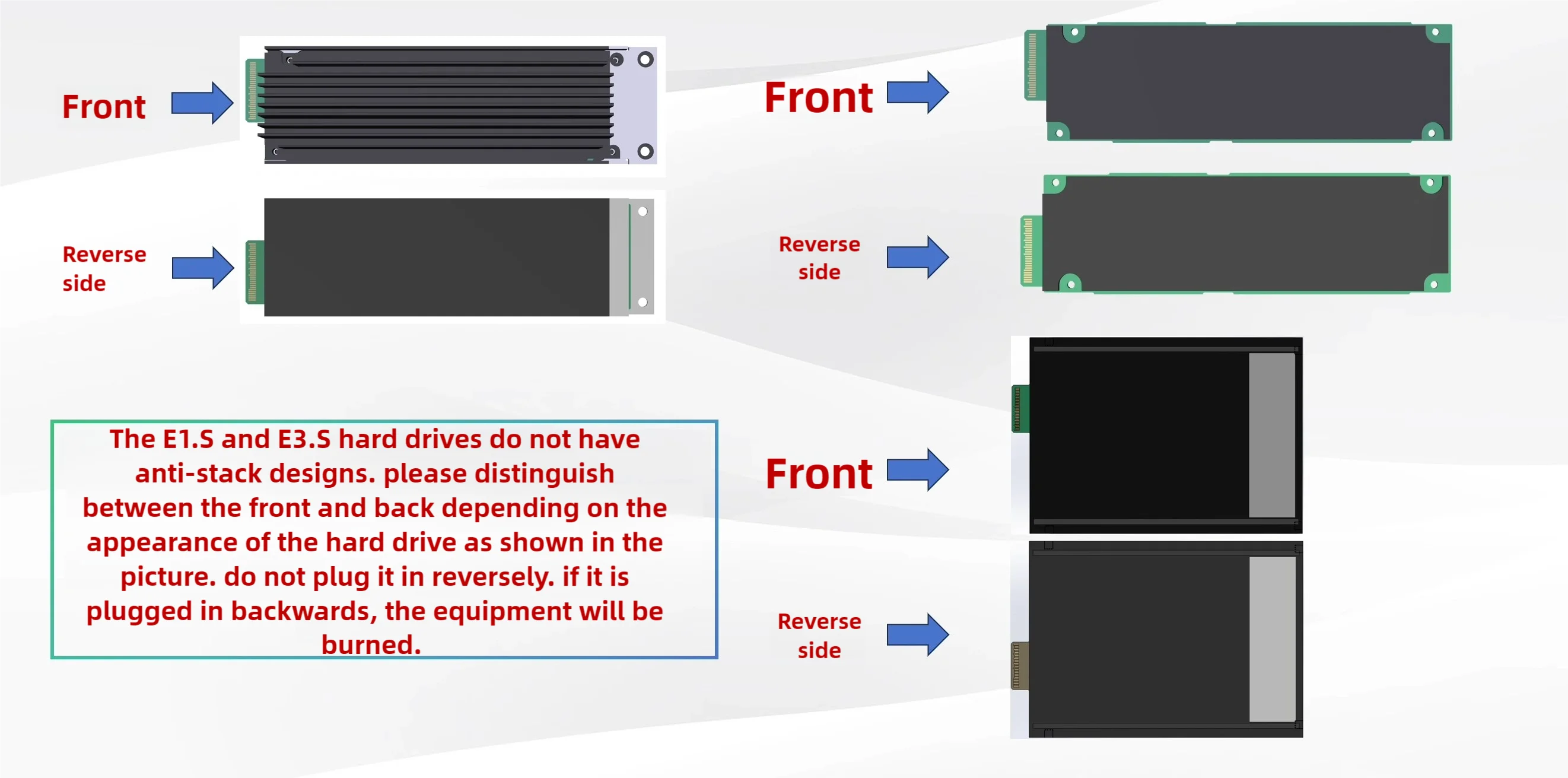 ¿Cómo debo distinguir entre el reverso y el reverso de los discos duros E1.S y E3.S?