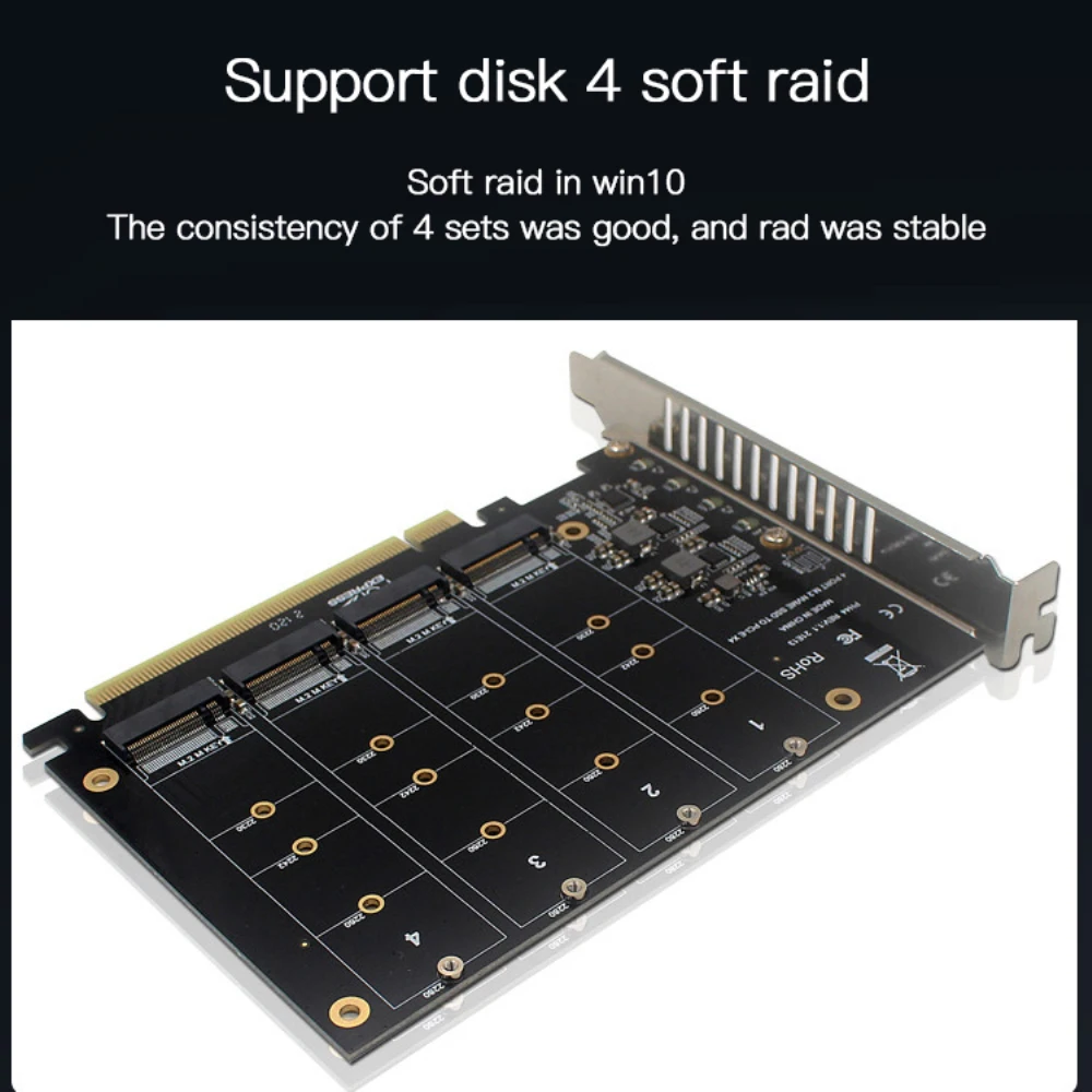 Tarjeta de matriz de unidad de estado sólido de 4 discos, estructura sólida, PCB grueso, interfaz PCIEX16 estable, cuida sus datos importantes.