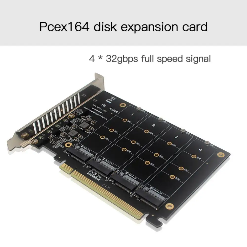 Tarjeta de expansión PCI-E X16 de 4 discos con señal de velocidad completa de 4*32Gbps y expansión simultánea.