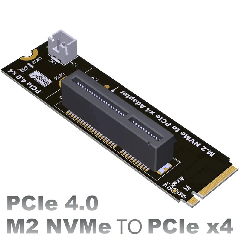 Comprar Tarjeta adaptadora de tarjeta elevadora M2 Nvme Key-M a PCI-E 4,0 X4, tarjeta convertidora con cable de alimentación SATA para M.2 M Key 2260 2280 SSD
