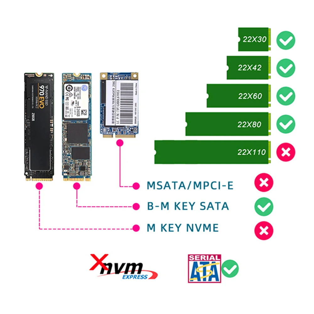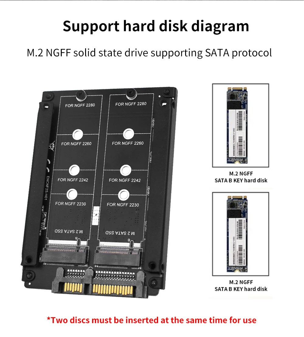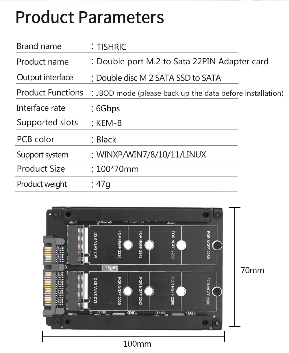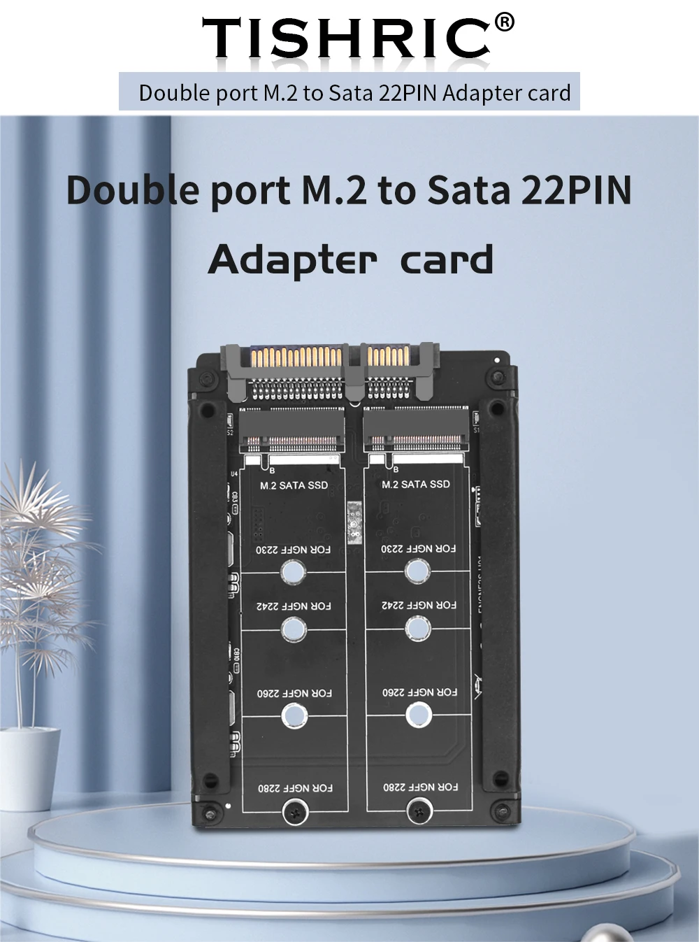 Comprar Tarjeta adaptadora TISHRIC de doble puerto M.2 a Sata 22PIN M.2 NGFF SSD en interfaz SATA de 2,5 pulgadas para SSD 2230-2280 M2