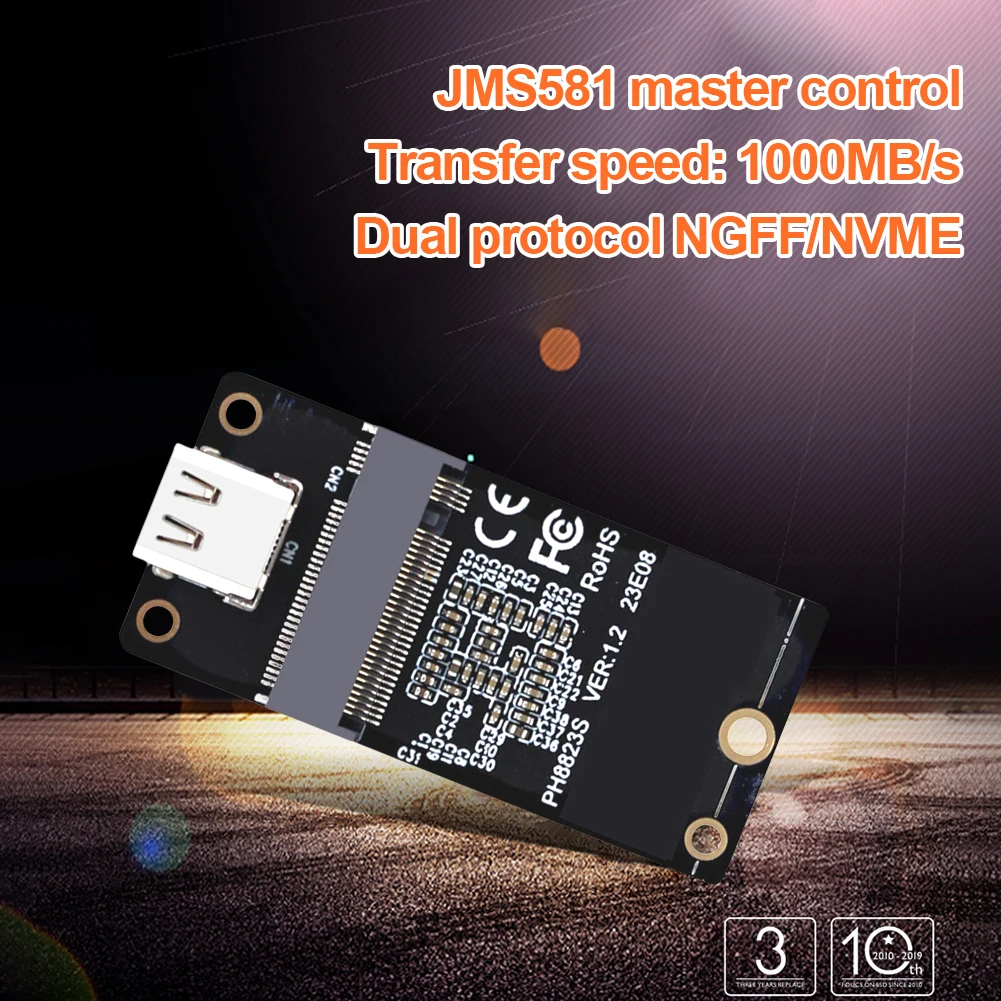 Adaptador M.2 NVME SSD JMS581 tarjeta adaptadora de unidad de estado sólido tipo C USB3.1 convertidor de caja de disco duro compatible con SSD 2230 2242 2260 2280