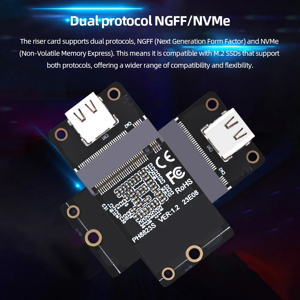 4. Velocidades de transferencia de hasta 1000 MB/s:Según la descripción, esta tarjeta de conversión Admite velocidades de transferencia de hasta 1000 MB/s. Esto significa que cuando se usa con una unidad de estado sólido M.2 que admite el protocolo dual NGFF/NVME, puede lograr velocidades de transferencia de datos más rápidas, proporcionando un rendimiento de lectura y escritura rápido.