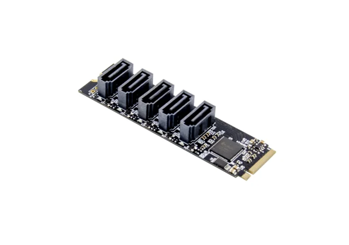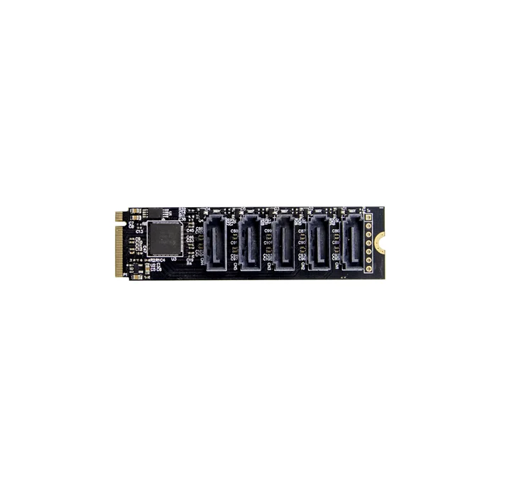 El M.2 Teclas M SATA3.0 La tarjeta de expansión usó una nueva solución de chip JMB585, alta velocidad y rendimiento estable, está comprometida a resolver la demanda del usuario por un enorme espacio de datos, la tarjeta de expansión de alta velocidad logra un ancho de banda de línea PCI Express Gen 3x2, con cinco puertos SATA que se extienden desde el host de la PC al M.Ranura 2 Key M, cada puerto con una velocidad de transmisión de hasta 6 Gbps.Se puede aplicar ampliamente a computadoras personales y otros dispositivos de almacenamiento de datos grandes.