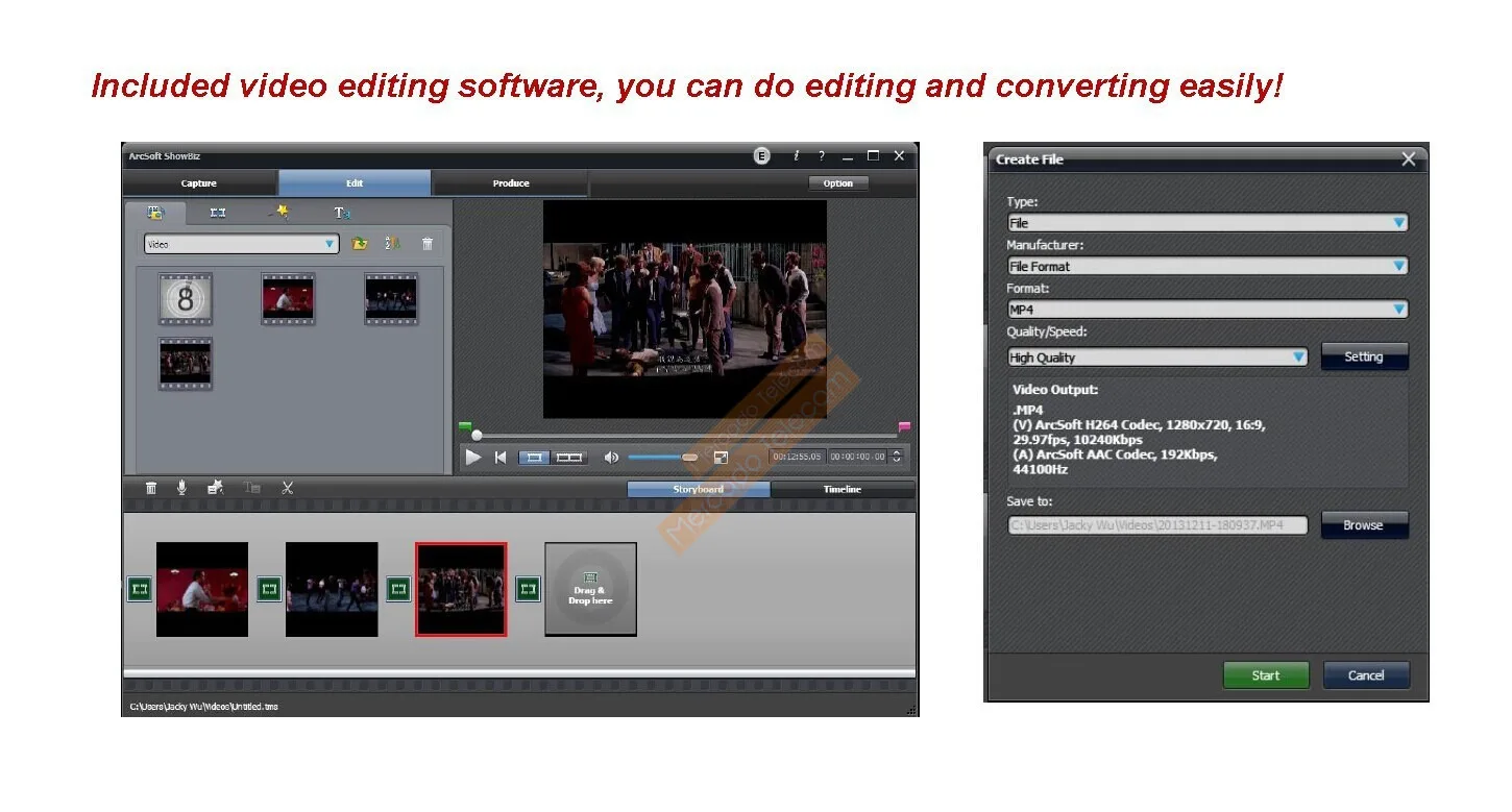Included video editing software, you can do editing and converting easily!
