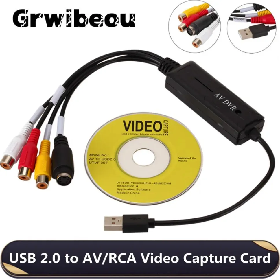 Comprar Tarjeta de captura de Audio y vídeo Grwibeou USB 2,0, adaptador fácil de tapar, captura de vídeo VHS a DVD para tarjeta de captura de vídeo Windows 10/8/7/XP