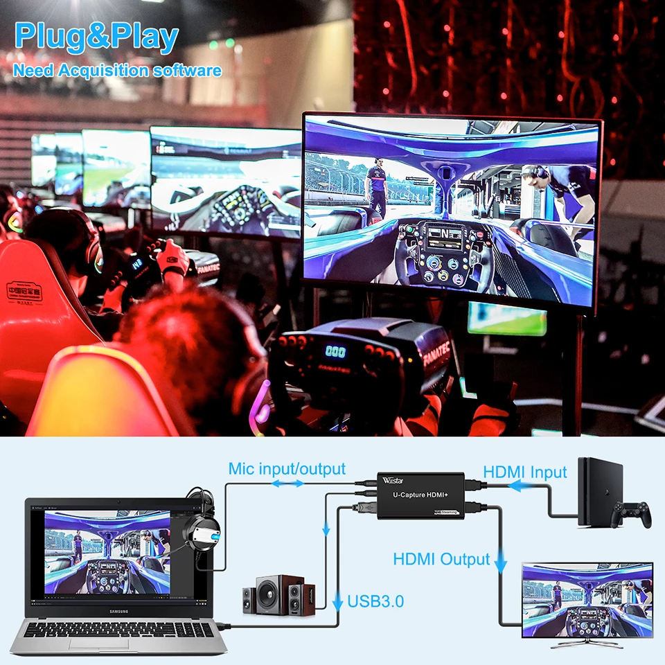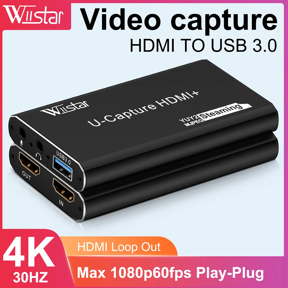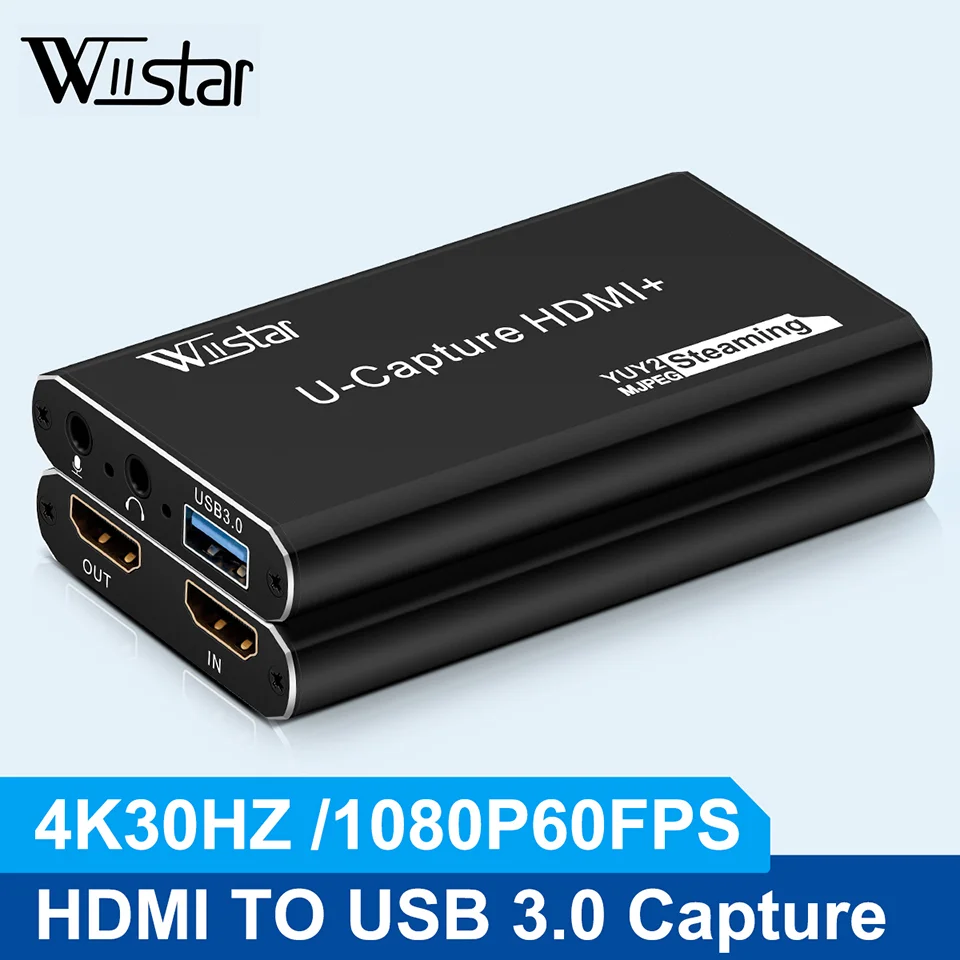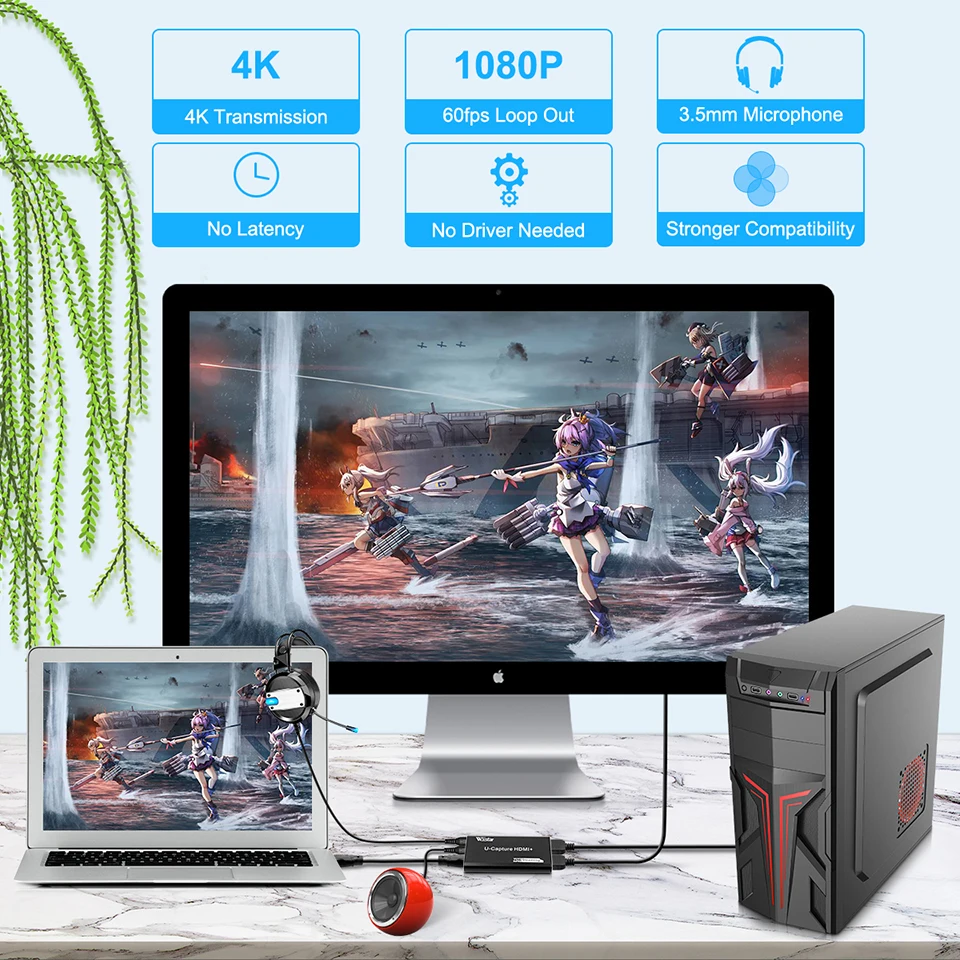 Comprar Tarjeta de captura de Audio y vídeo 4K HDMI a USB 3,0, grabación de juegos para PS4, PS5, cámara, portátil, PC, transmisión en vivo, 1080P, 60fps, YUY2