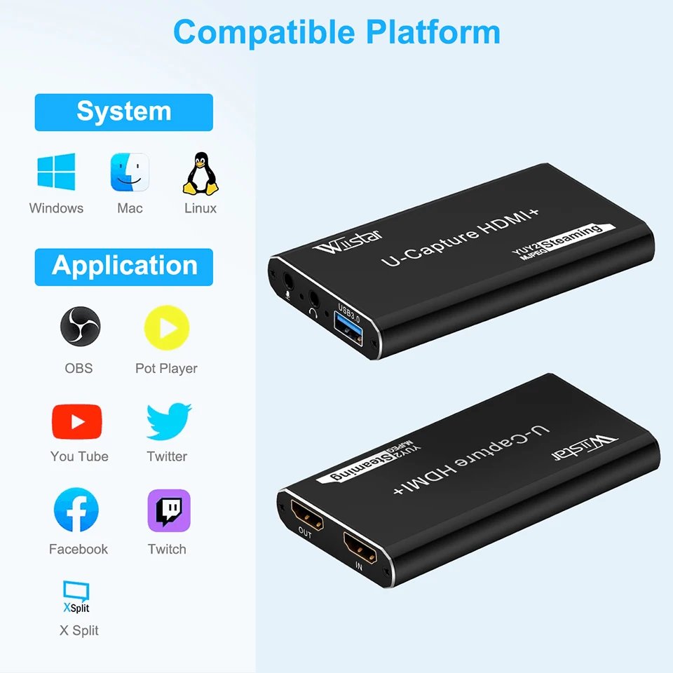 * Admite la mayoría de software de adquisición, como VLC,OBS ,Amcap, Vmix,Wirecast,Potplayer, etc.