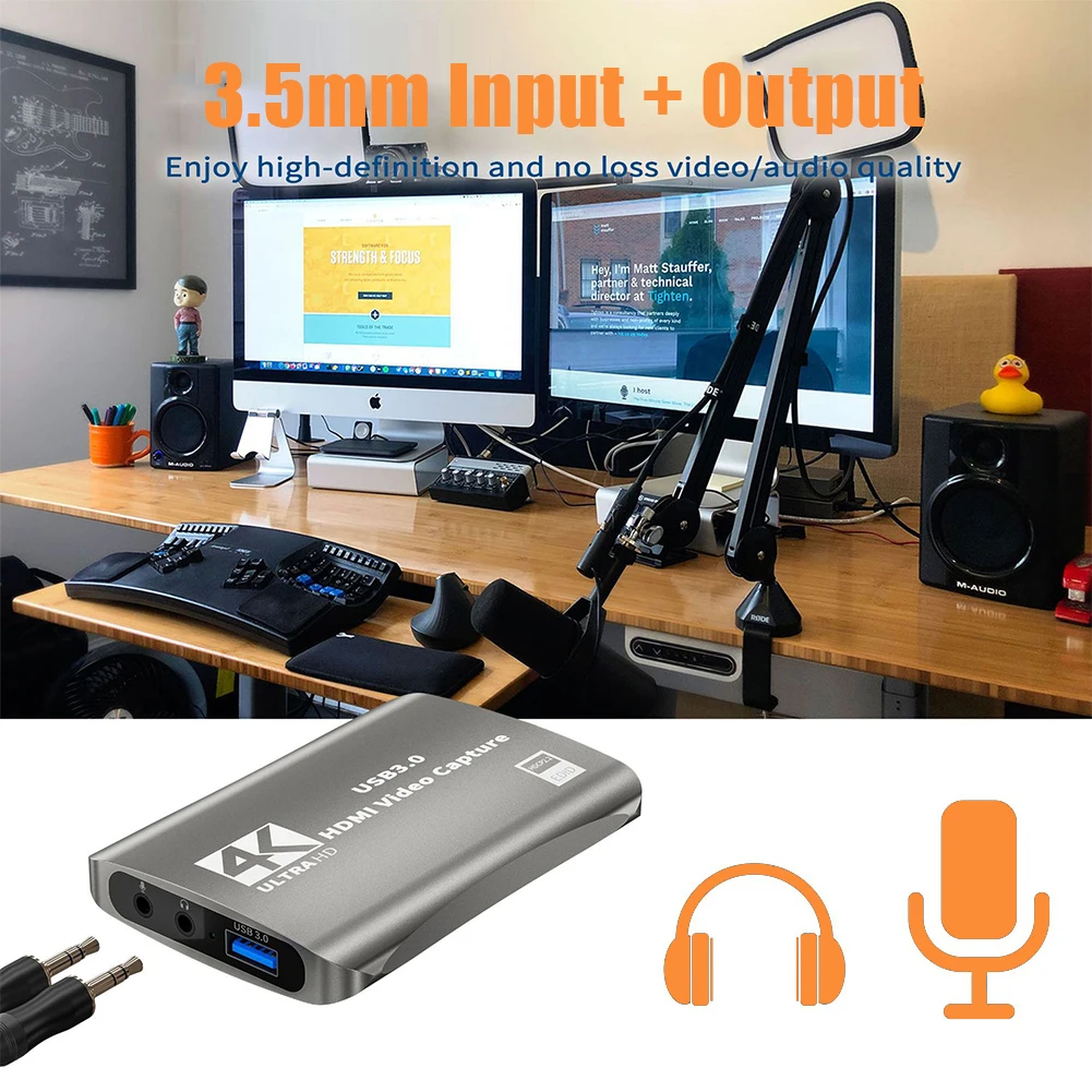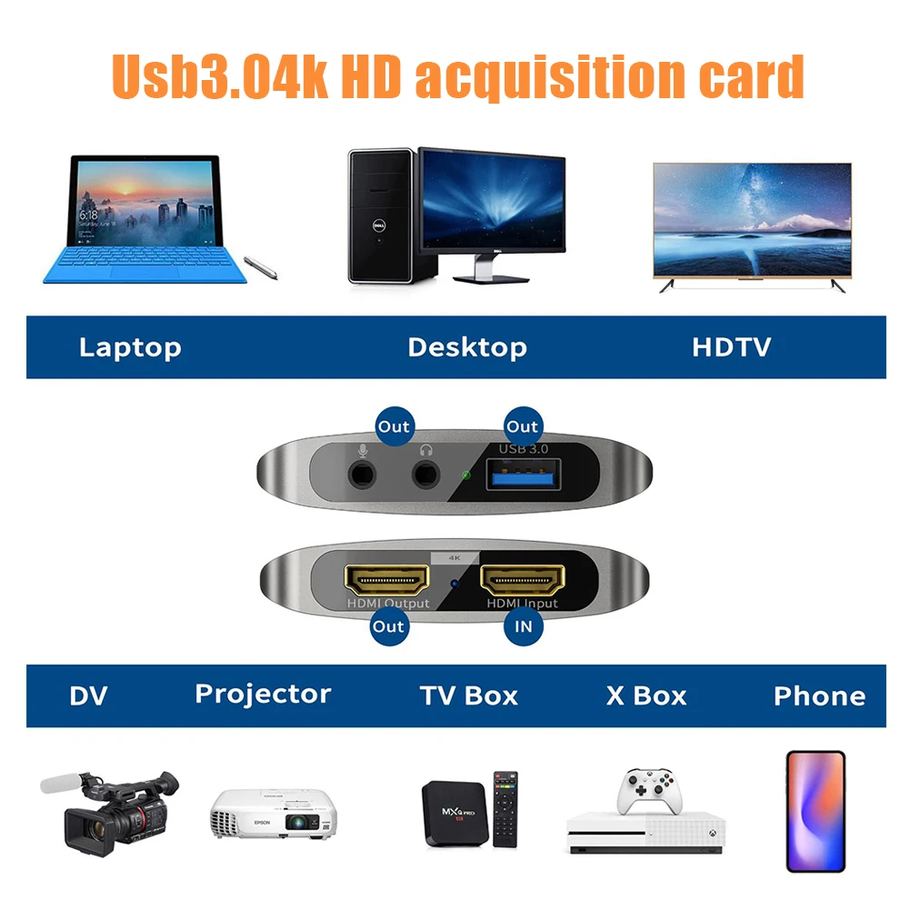 Características:1. Tarjeta de captura de vídeo HD 4K, utiliza chips avanzados para transmitir y capturar vídeo de forma rápida, sin problemas y sin atascos.