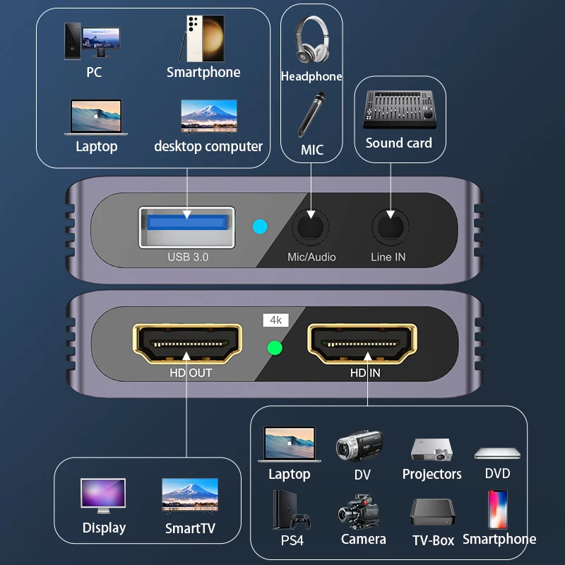 Comprar Tarjeta de captura de vídeo 1080P 60FPS, dispositivos de grabación para Nintendo Switch PS4 5 Xbox Series X, cámara de transmisión en vivo