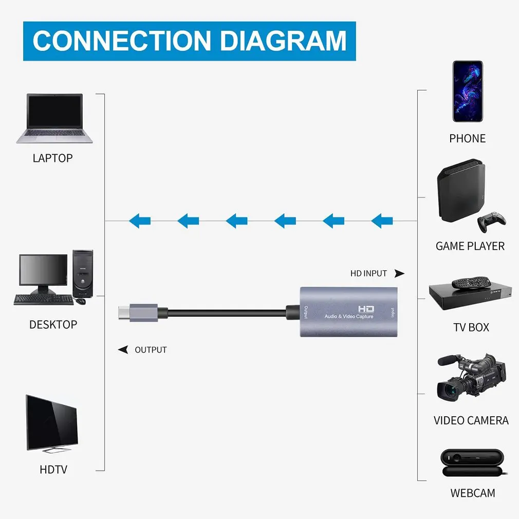 Comprar Tarjeta de captura de vídeo 4K 1080P Tipo C, Capturadora de vídeo compatible con HDMI, USB 2,0, para PS4, PS5, Switch, teléfono, grabación de juegos, PC, transmisión en vivo