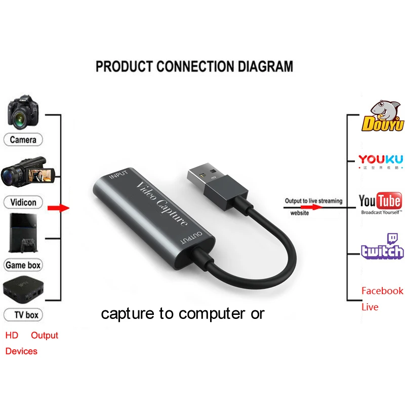 Comprar Tarjeta de captura de vídeo 4K, 30HZ a 1080P, USB 2,0, para PS4, cámara, teléfono, juegos, ordenador portátil, PC, transmisión en vivo, caja de grabación