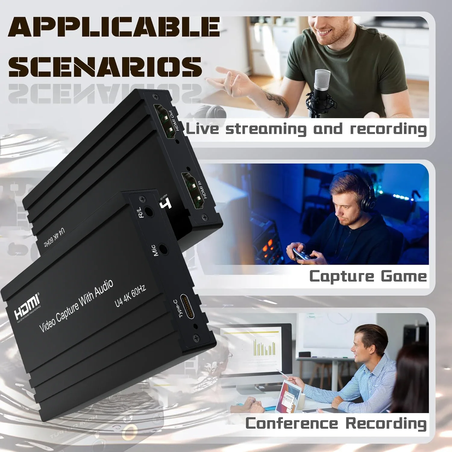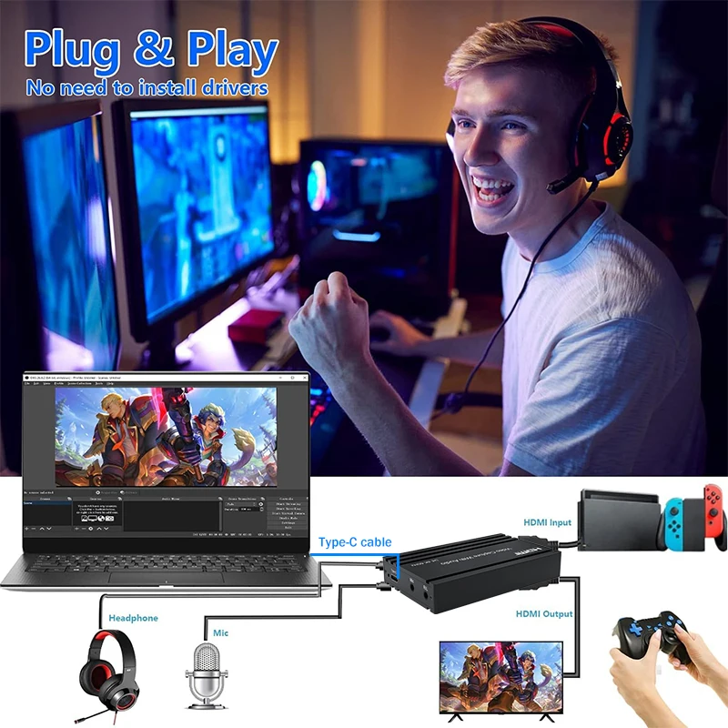 Comprar Tarjeta de captura de vídeo 4K, 60Hz, HDMI tipo C, placa de transmisión en vivo, HDMI a USB 3,2, grabadora de vídeo con micrófono de Audio, OBS, Vmix en vivo