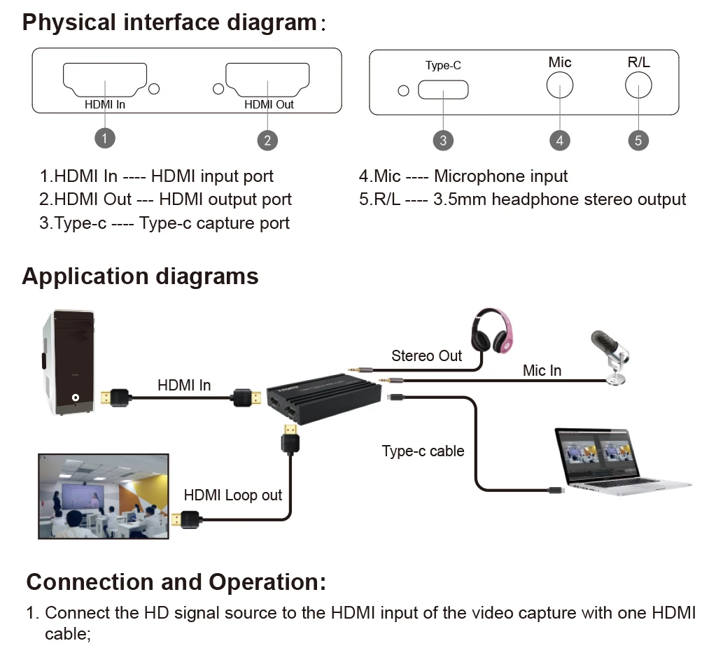 * Salida: salida de bucle 4K HDMI 2,0, salida tipo C (5Gbps), salida de audio.