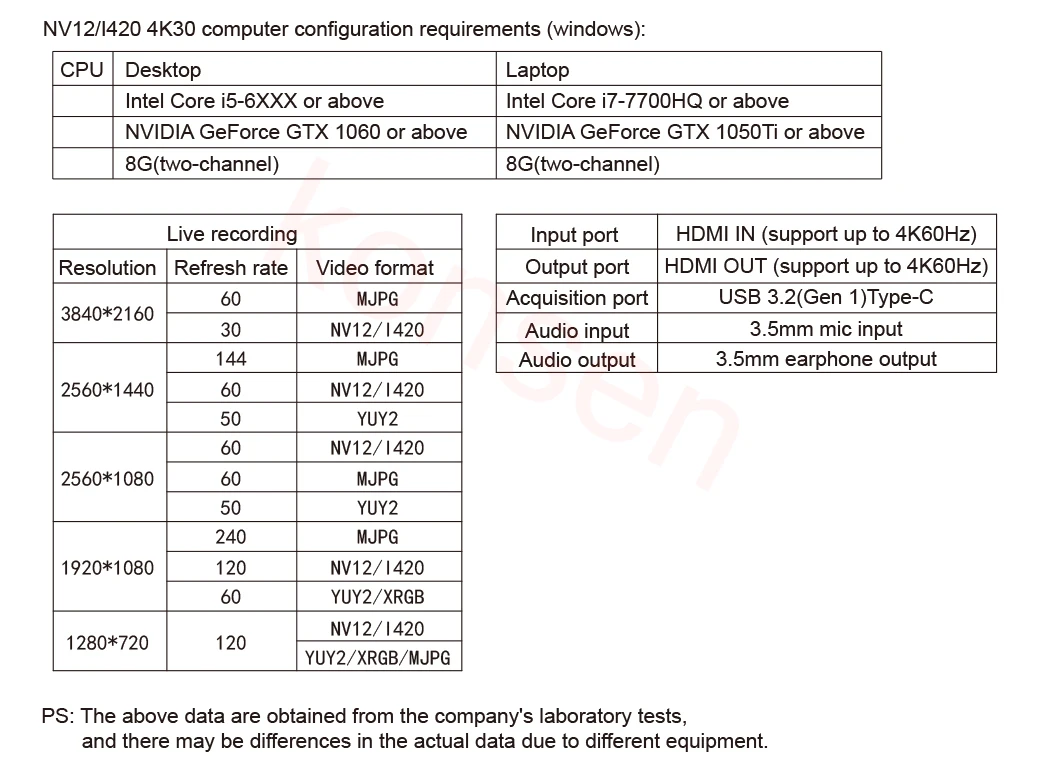 * Admite formatos de vídeo: MJPEG/YUY2/NV12/I420,etc.