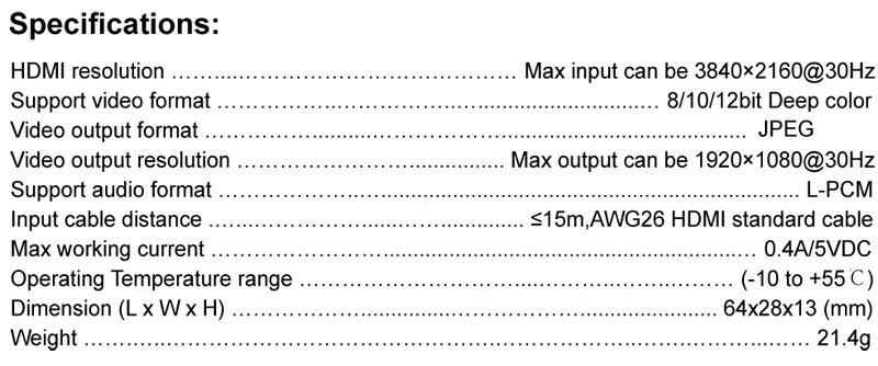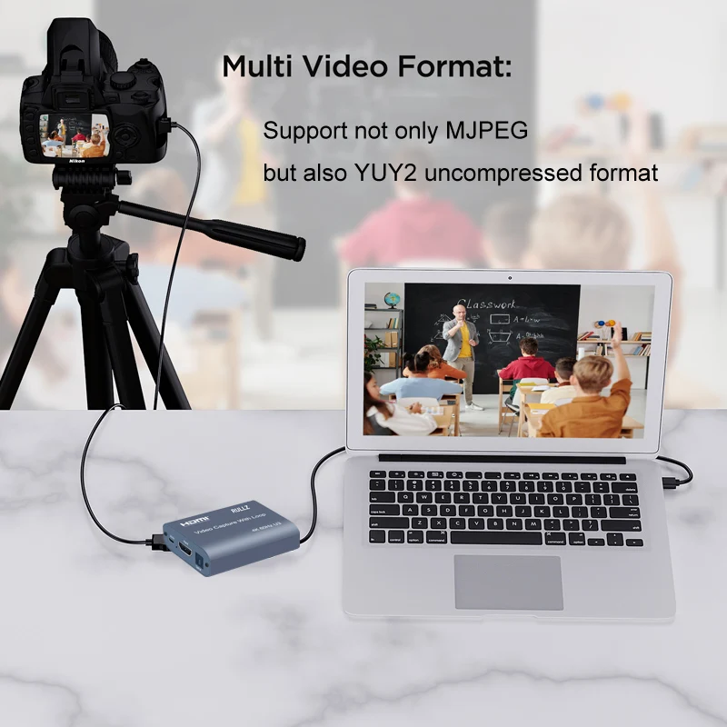 Le permite una entrada máxima de señal HDMI 4K 60HZ y captura de archivos hasta Full HD 1080p 60fps,