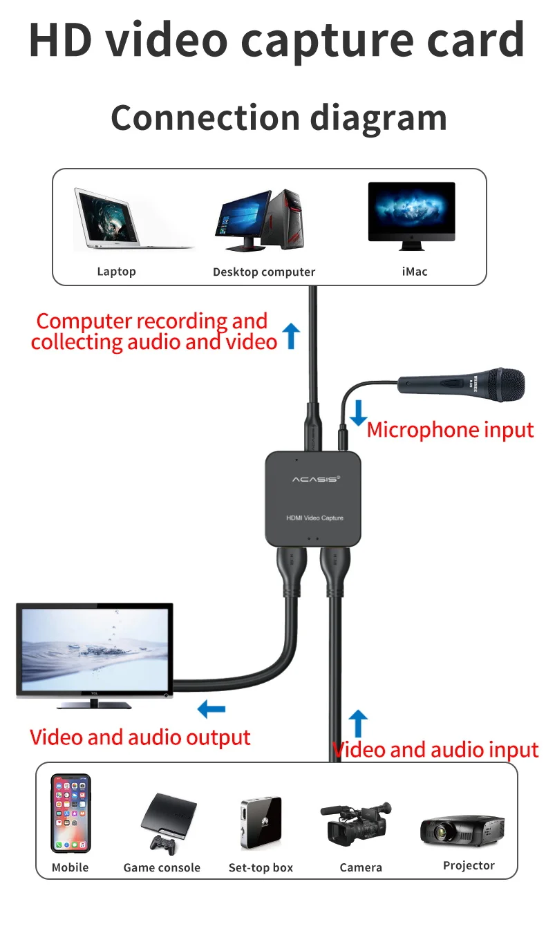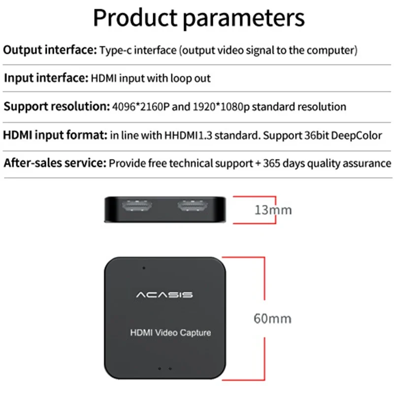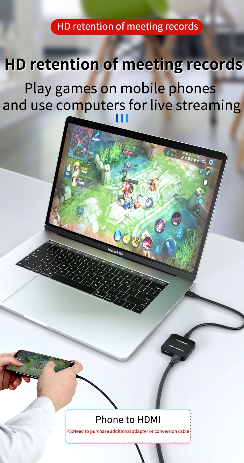 Tarjeta de captura de vídeo 4K Compatible con tipo C a HDMI, adaptador de 1080p 60FPS, tarjeta de captura USB para juegos, dispositivo de caja grabadora para transmisión en vivo