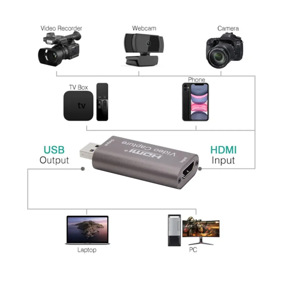 Comprar Tarjeta de captura de vídeo 4K, grabadora compatible con HDMI, USB 3,0/USB2.0, para PS4, juegos, DVD, cámara de grabación en vivo