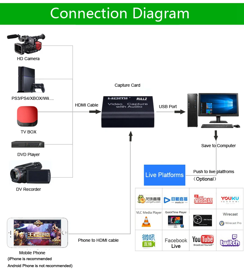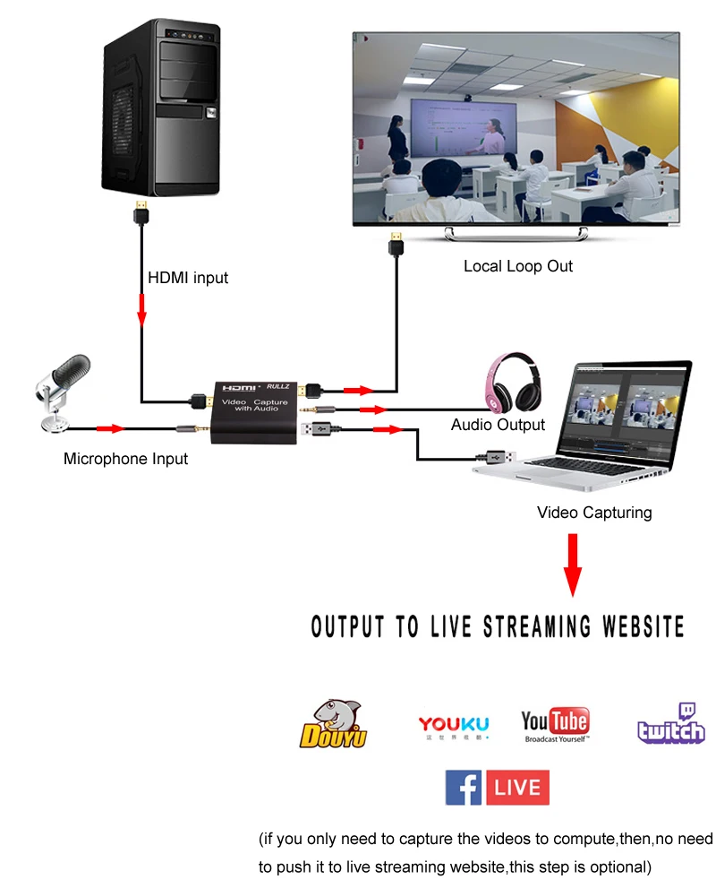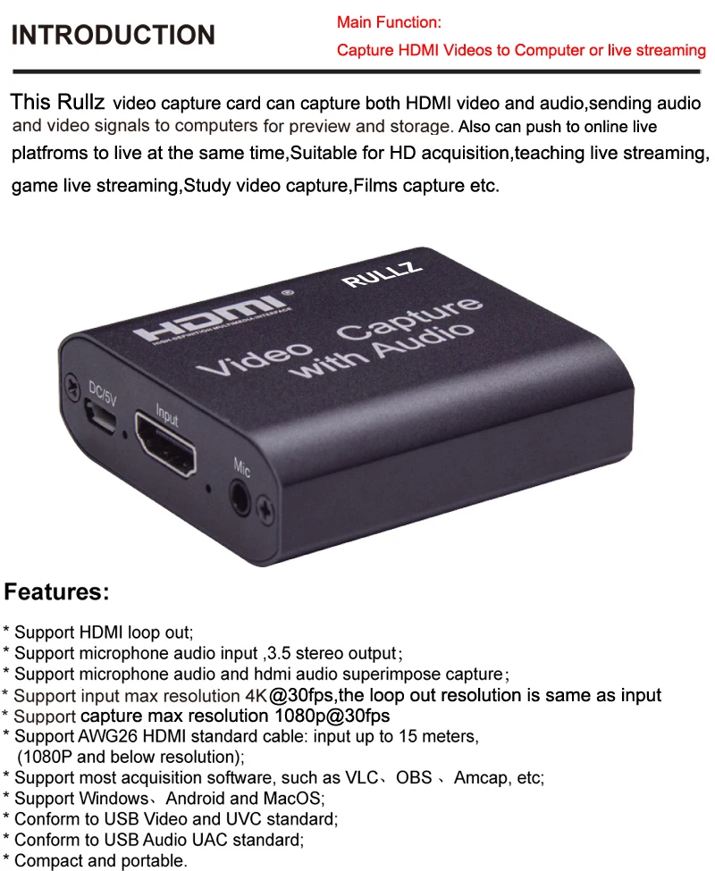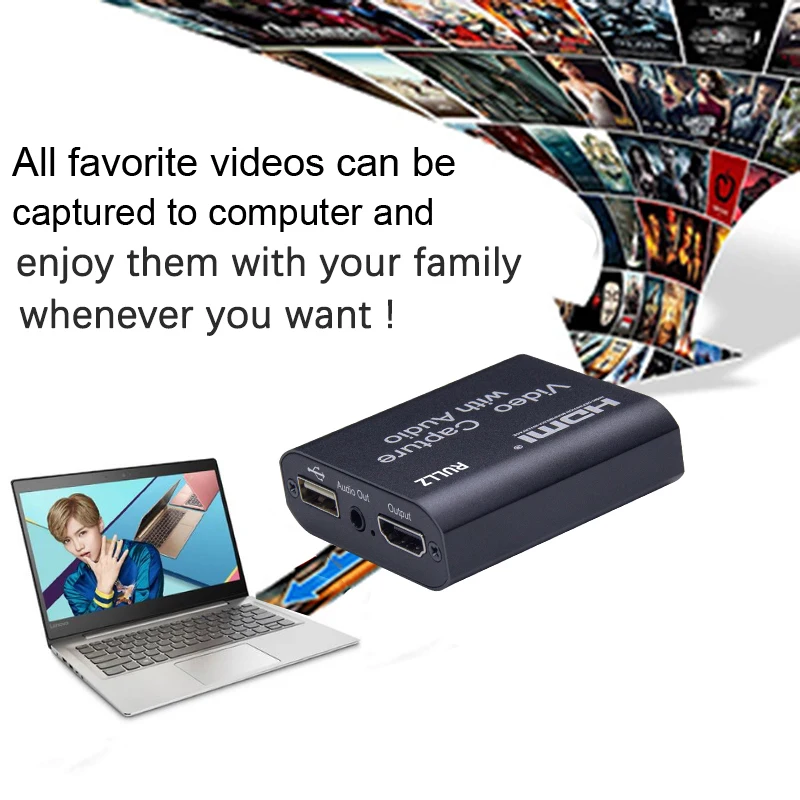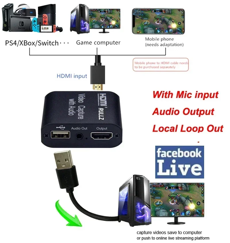 Comprar Tarjeta de captura de vídeo 4K HDMI a USB 2,0, salida de Audio en bucle HDMI, micrófono en 1080P, caja de grabación de juegos, placa de transmisión en vivo para ordenador portátil y PC