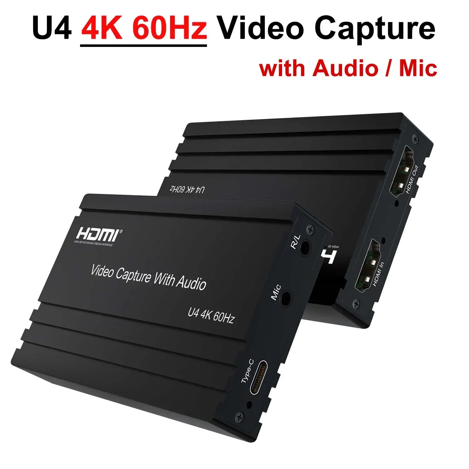 Comprar Tarjeta de captura de vídeo 4Kp60 HDMI a USB 3,2 grabadora de vídeo para PS4 juego DVD videocámara cámara transmisión en vivo con micrófono de Audio