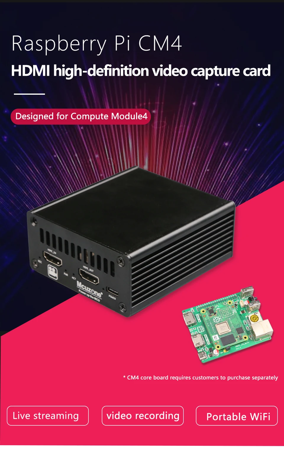 Tarjeta de captura de vídeo de alta definición Raspberry Pi CM4 HDMI, entrada HDMI, salida HDMI 4G LTE