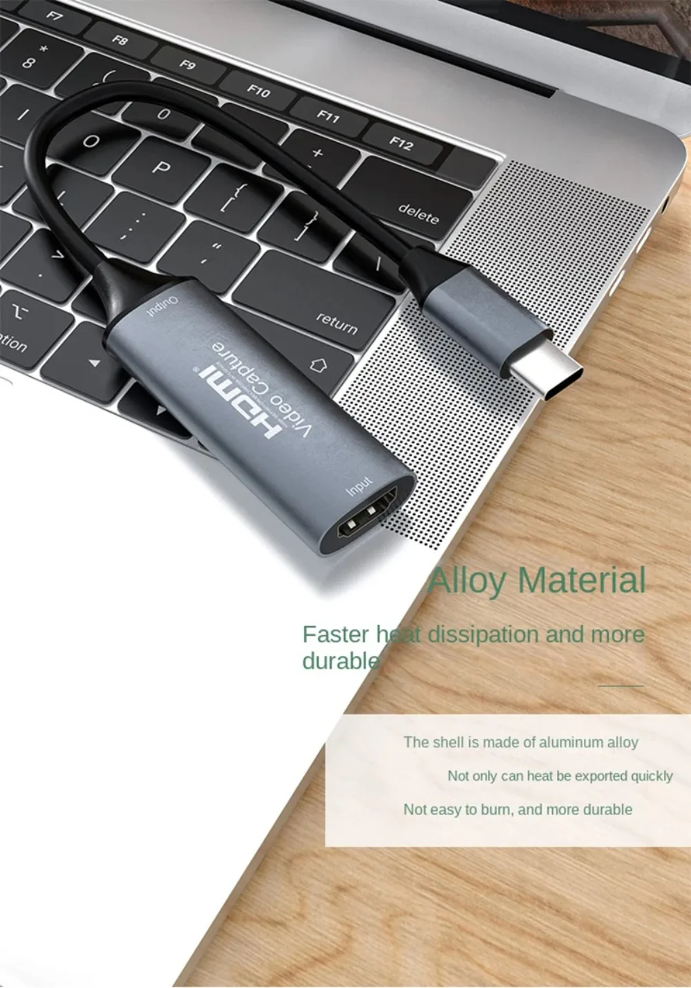 (5).Tarjeta de captura de vídeo 4K tipo C HDMI a tipo C 2.0 Grabber de vídeo 1080P para Macbook ordenador portátil PC cámara grabación de transmisión en vivo