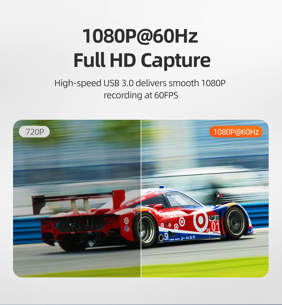 Esta tarjeta de captura USB 3.0 admite la grabación de hasta 1080P a 60 FPS, brindando detalles más nítidos, colores vibrantes y movimiento ultrasuave en comparación con los dispositivos estándar de 720P.Es compatible con todas las fuentes HDMI, incluidas PS4, PS3, Xbox One, Xbox 360, Switch, cámaras y más.Perfecto para transmitir juegos de ritmo acelerado, eventos en vivo o presentaciones profesionales, garantiza videos nítidos y sin demoras en todo momento.