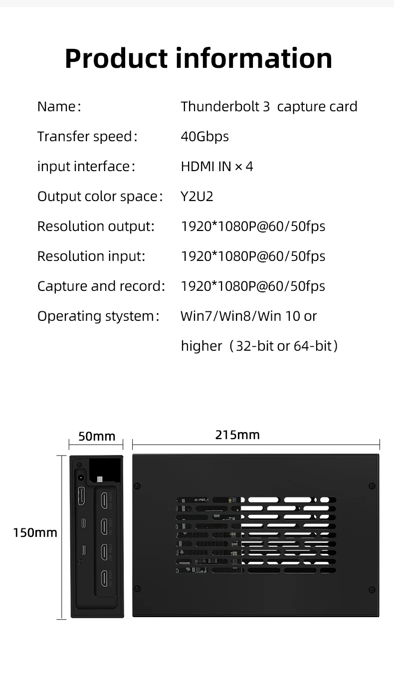 Comprar Tarjeta de captura de vídeo compatible con hdmi, 4 canales, thunderbolt 3, vmix, conmutador de director, Switch, PS4, transmisión en vivo