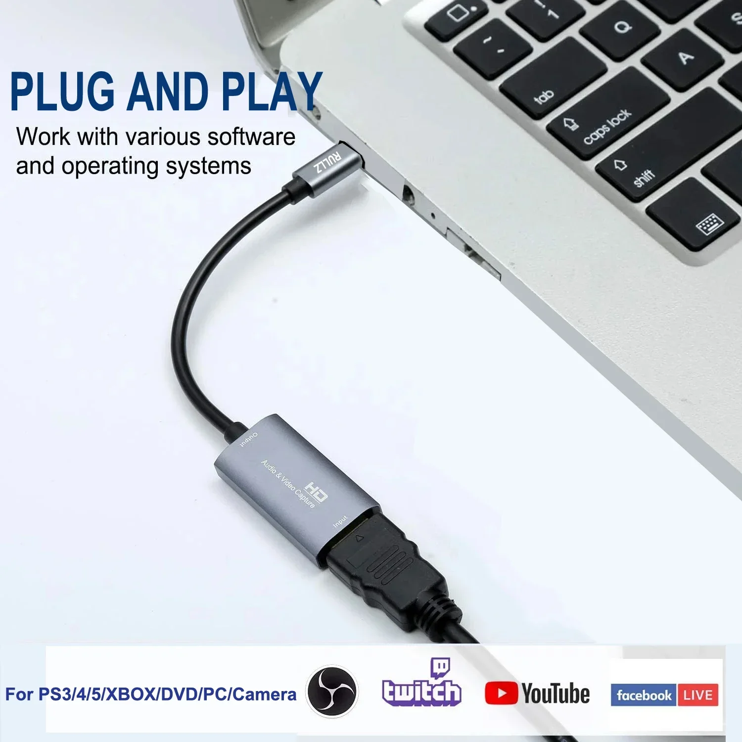 Tarjeta de captura de vídeo compatible con HDMI 4K 1080P tipo C, grabador de vídeo USB para PS4, PS5, cámara de juego, grabación de teléfono, transmisión en vivo de PC