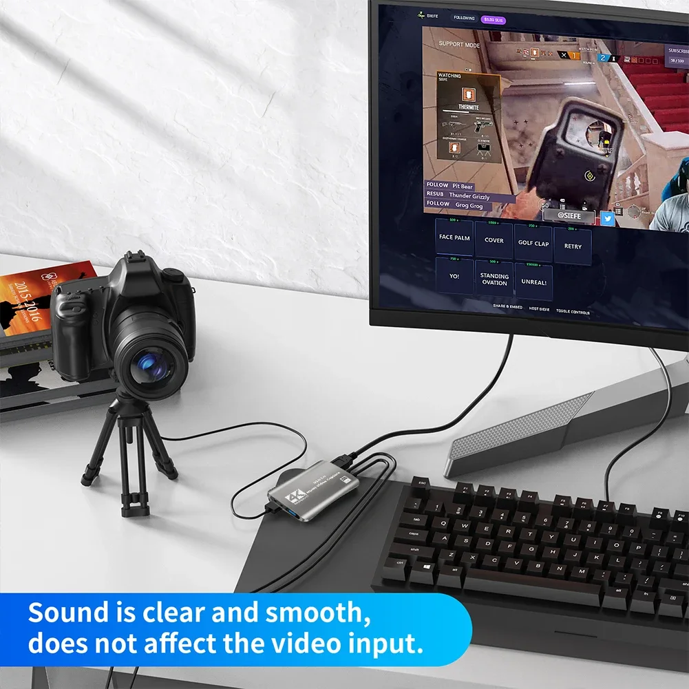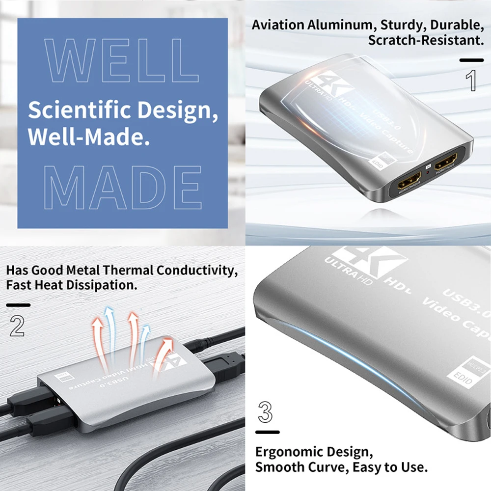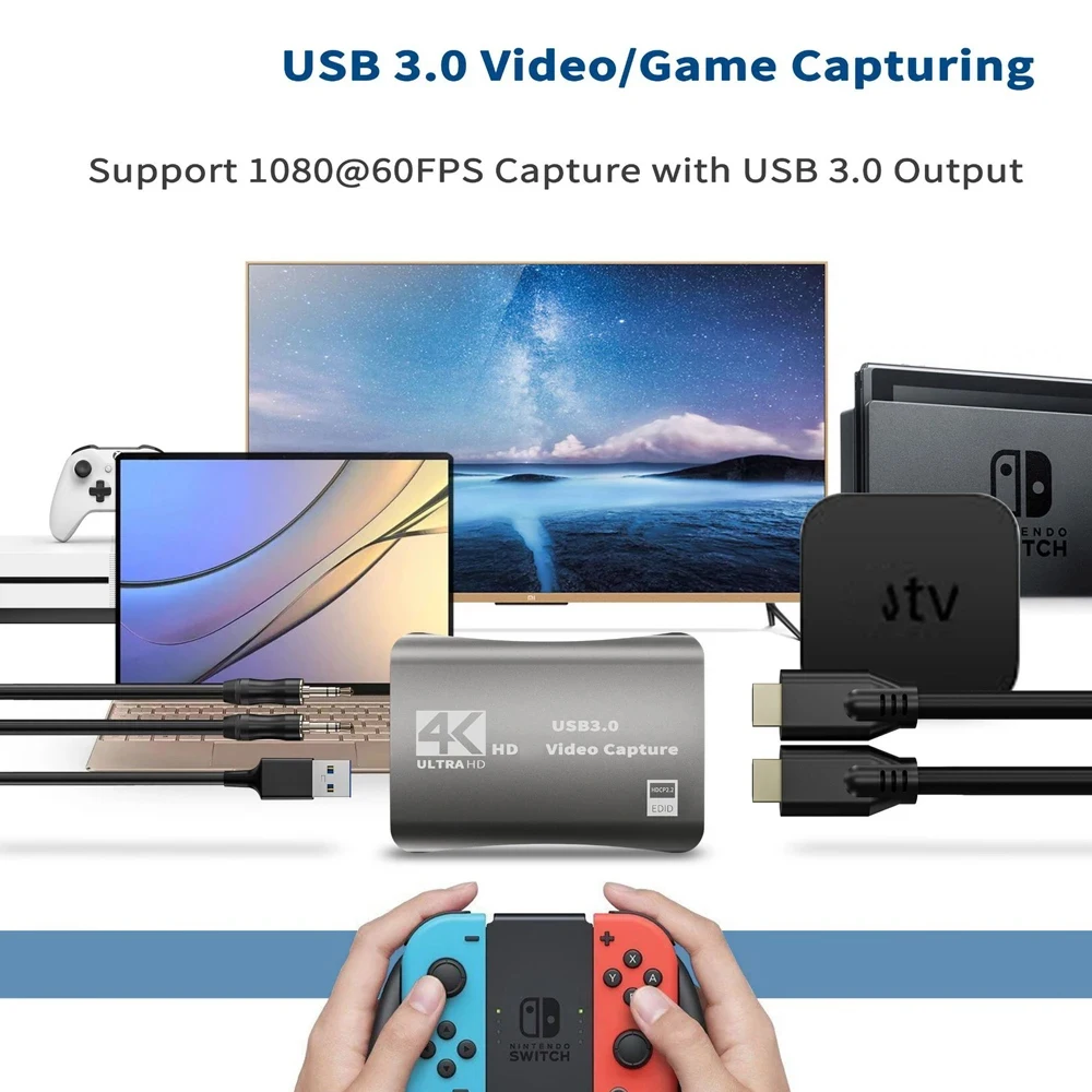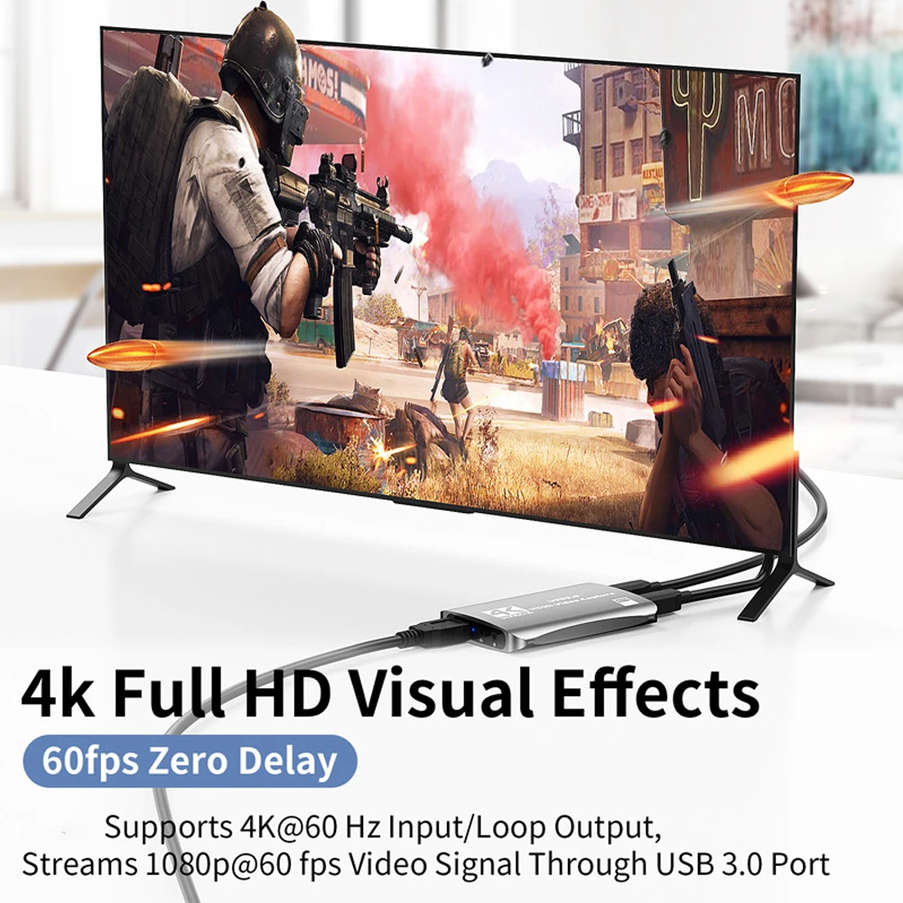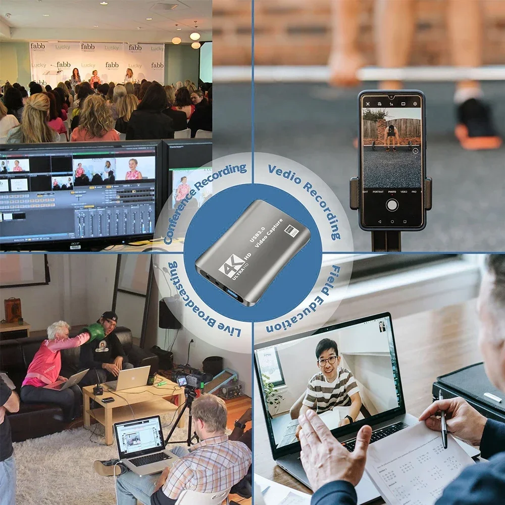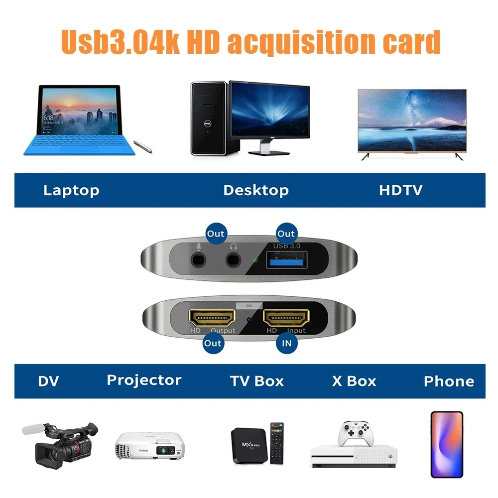 Características:1.Tarjeta de captura de vídeo 4K HD, utiliza chips avanzados para transmitir y capturar vídeo de forma rápida, fluida y sin atascos.