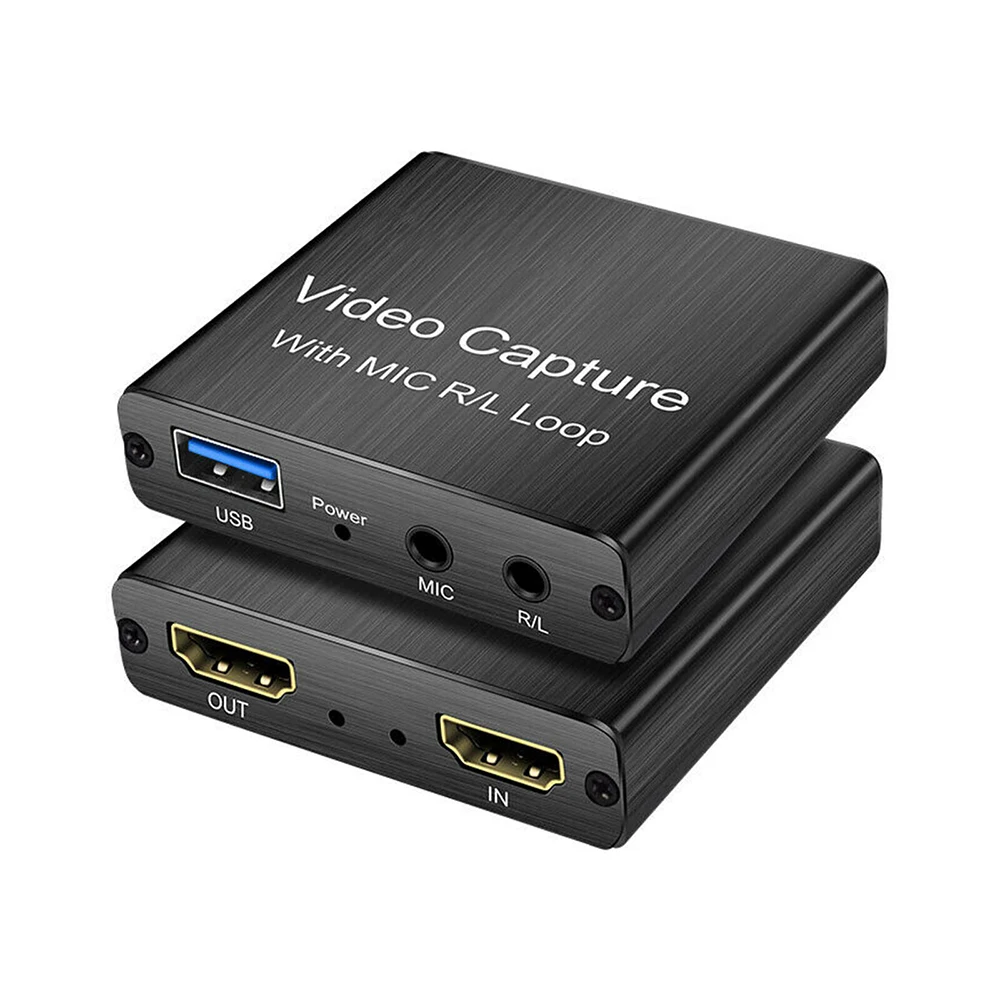 Comprar Tarjeta de captura de vídeo Compatible con HDMI 4K, dispositivo grabador USB 2,0, tarjeta de captura de juegos para transmisión en vivo, grabación de vídeo, salida en bucle
