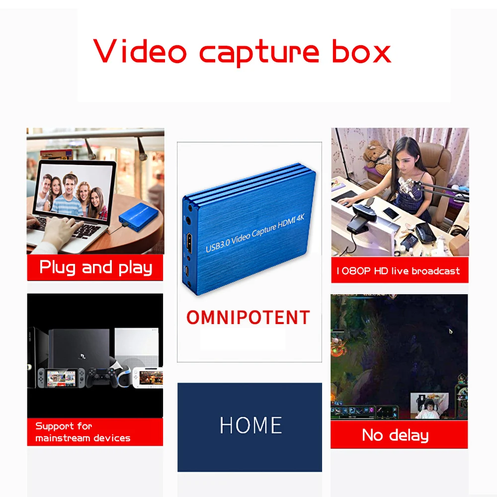 Comprar Tarjeta de captura de vídeo Dongle 4K 1080P 60fps HDMI a USB 3,0 HD grabador de vídeo para OBS, captura de juegos, transmisión en vivo