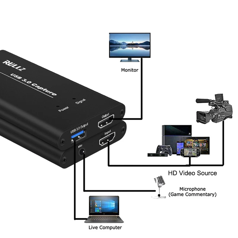 Comprar Tarjeta de captura de vídeo de entrada 4K, FULL HD, 1080P, 60fps, HDMI, compatible con USB 3,0, transmisión en vivo, caja de grabación de juegos, micrófono, Audio en bucle de TV