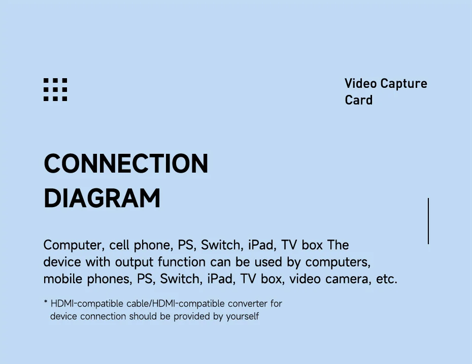 【Uso amplio】:Esta tarjeta de captura de video puede capturar video y audio simultáneamente y transmitir señales de audio y video a computadoras o teléfonos inteligentes para obtener una vista previa y almacenamiento. Por lo tanto, esta tarjeta de captura compatible con HDMI 4K es adecuada para adquisición de alta definición, transmisiones en vivo, salas de conferencias, grabación de video, grabación de enseñanza, imágenes médicas, transmisión en vivo de entretenimiento de juegos, etc.