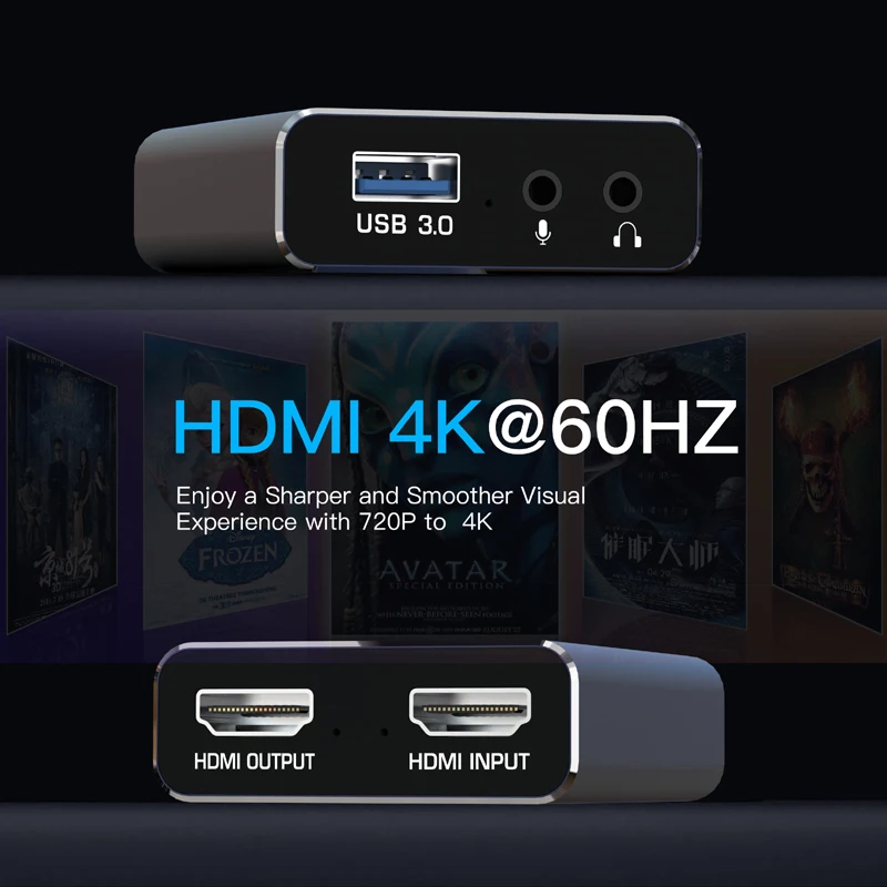 HD 1080P 4K @ 60Hz 1080P HDMI Tarjeta de captura de video a USB 3,0 Captura Juego de mesa Record Live Streaming Broadcast HDTV LAPTOP