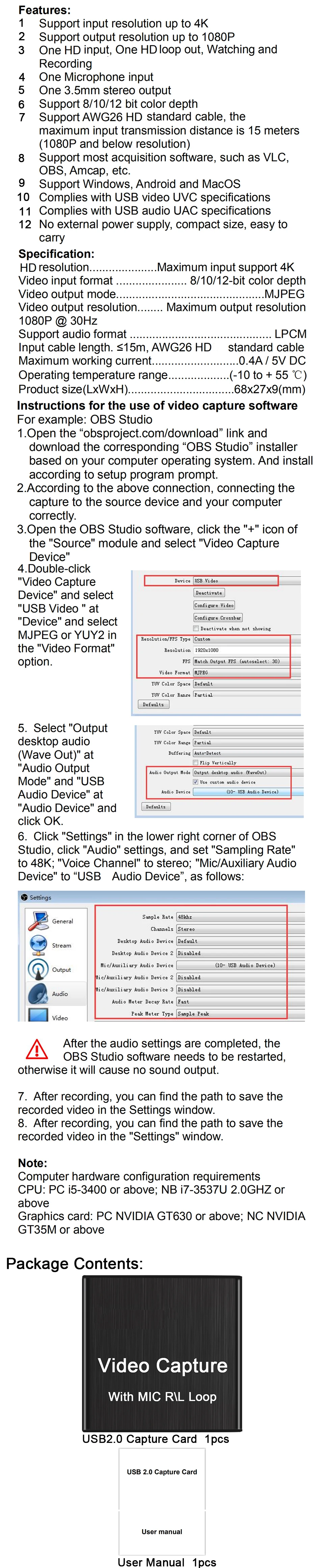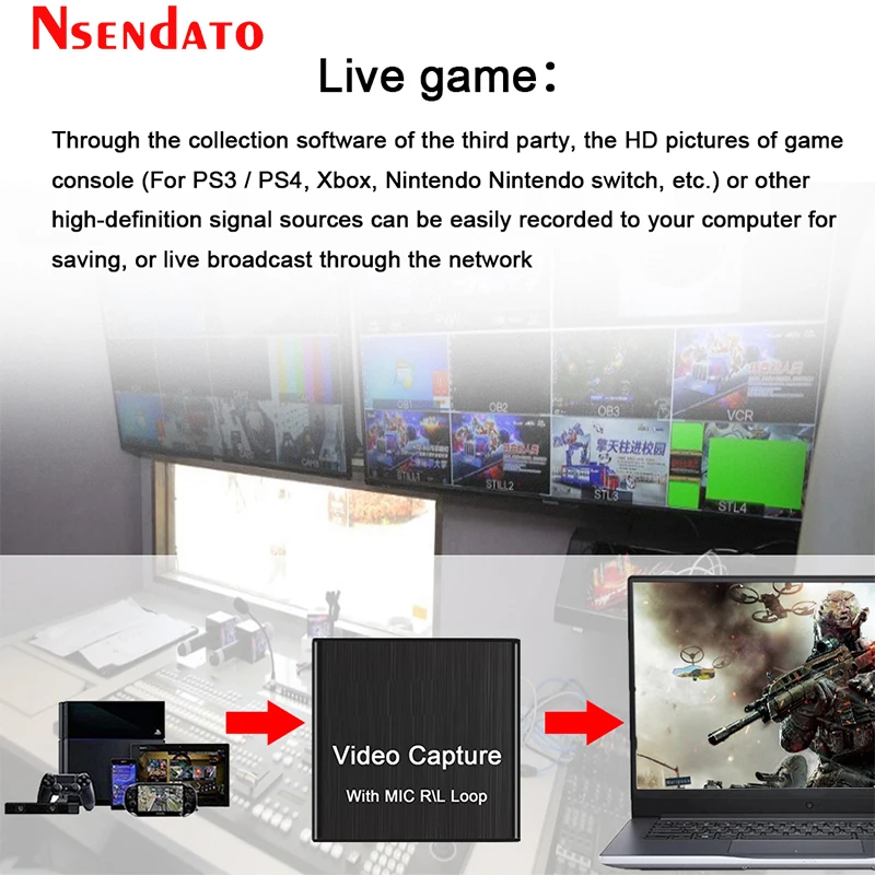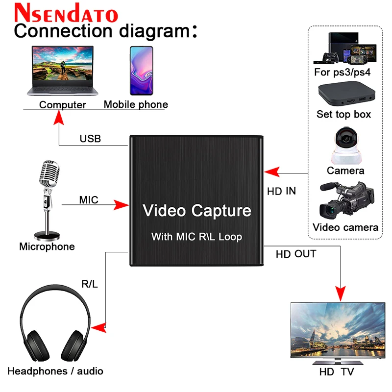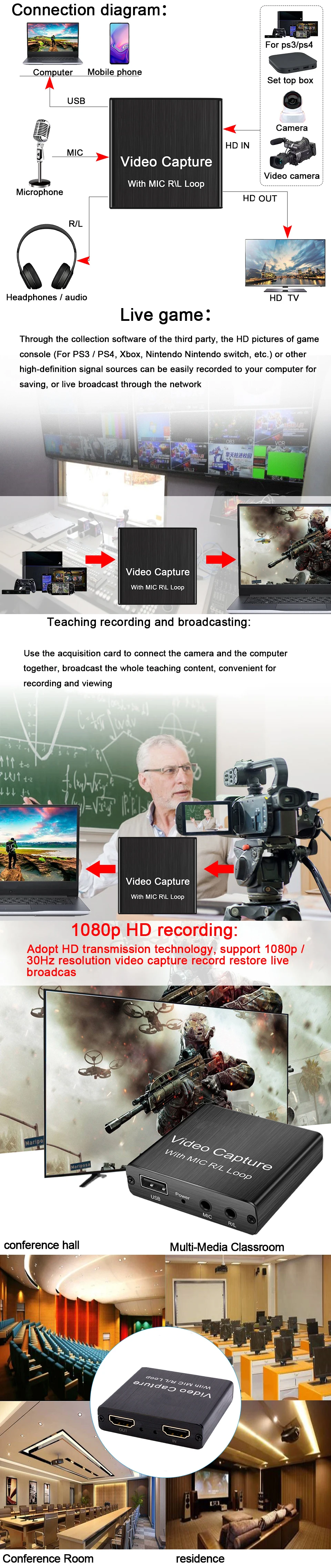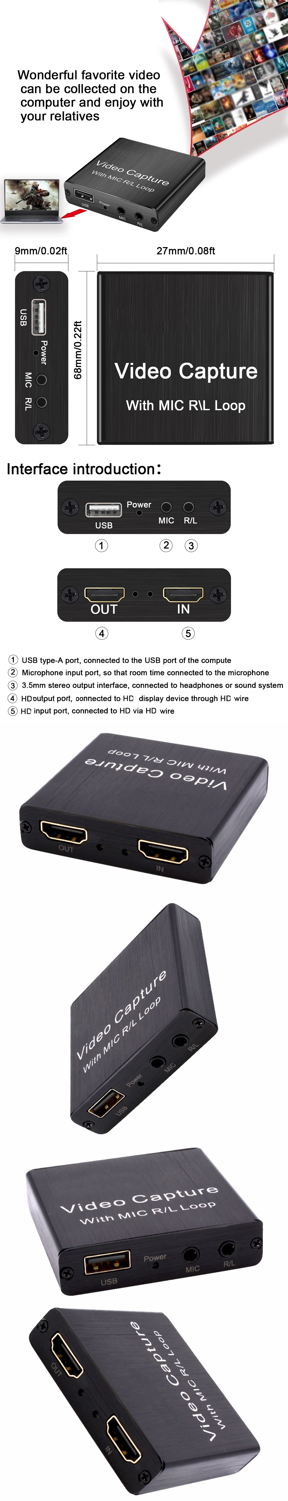 Comprar Tarjeta de captura de vídeo HD 4K, USB 2,0, grabador de vídeo HD con micrófono R/L para videocámara de juegos PS4, cámara HD, grabación en vivo