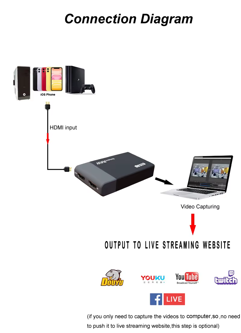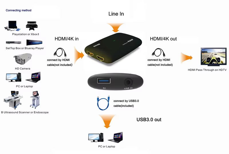 Comprar Tarjeta de captura de vídeo HD60 1080P 120fps 4K HDMI a USB3.0 Grabber de vídeo grabación de juegos para PS4 Xbox para Nintendo Switch transmisión en vivo
