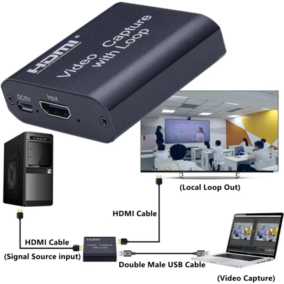 Comprar Tarjeta de captura de vídeo HDMI 4K, placa de transmisión con bucle, USB 2,0, 1080P, caja grabadora para PS4, juego, cámara de DVD