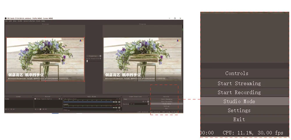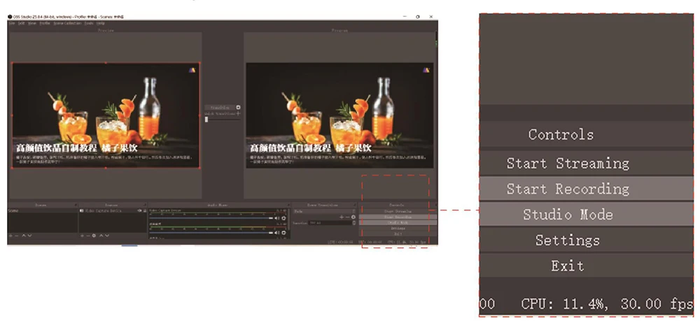 1. Conecte la fuente de señal UHD a la entrada HDMI de la captura de vídeo con un cable HDMI. 2. Conecte el dispositivo de visualización a la salida HDMI de la captura de vídeo con un cable HDMI. 3. Conecte el puerto USB del PC a la salida USB de la captura de vídeo con un cable USB. 4: Pasos de operación para la captura de video USB (OBS): Abra el software → Elija las fuentes de "Dispositivo de captura de video" → Establezca el tamaño de la imagen → Elija "Modo de estudio" (doble ventana) →Elija "Iniciar grabación".