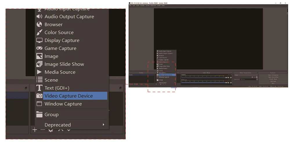 1. Agregue nuevas fuentes, elija "Dispositivo de captura de video"
