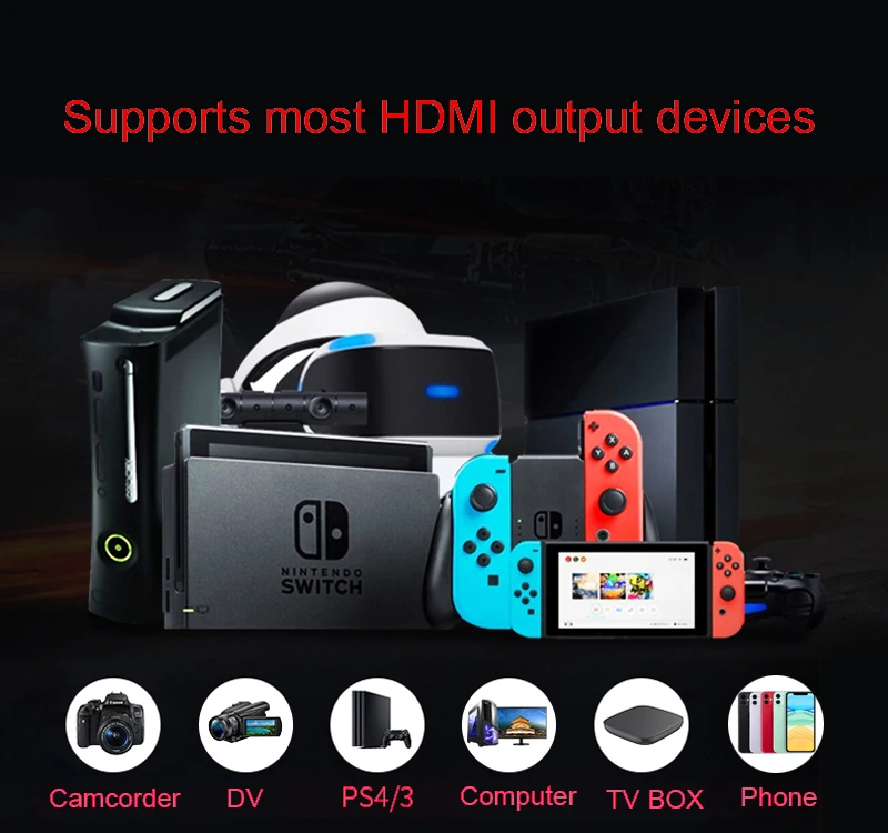 La captura de video puede capturar tanto video HDMI como audio HDMI, enviando señales de audio y video a computadoras y teléfonos inteligentes para Vista previa y almacenamiento. Adecuado para adquisición de alta definición, grabación de enseñanza, imágenes médicas, etc.