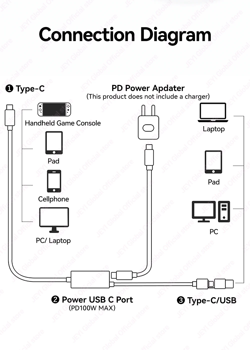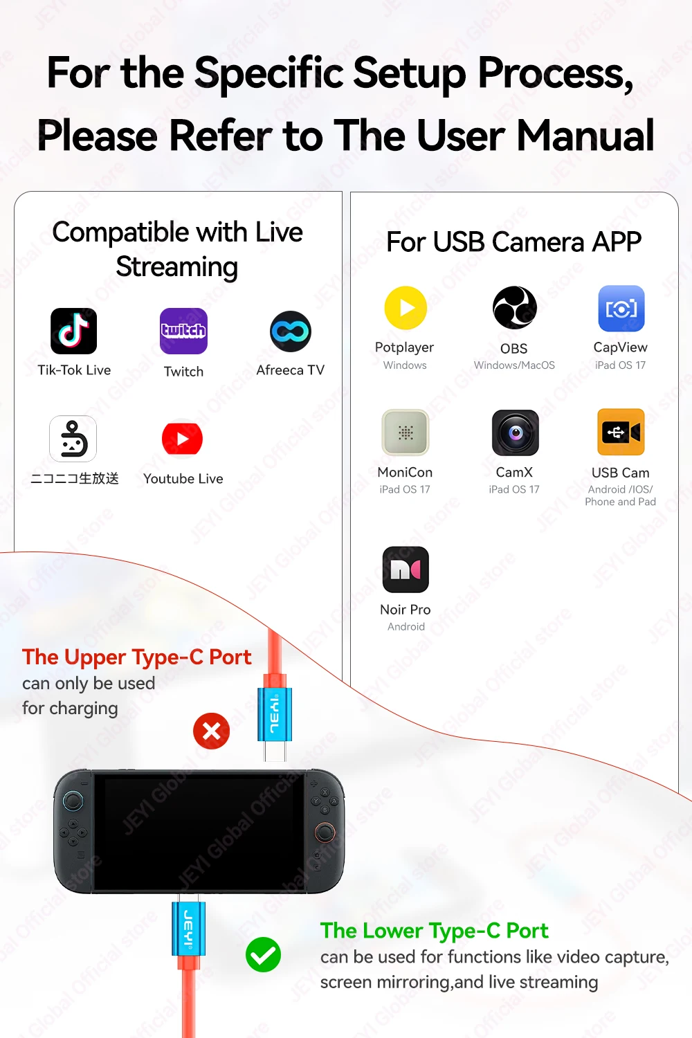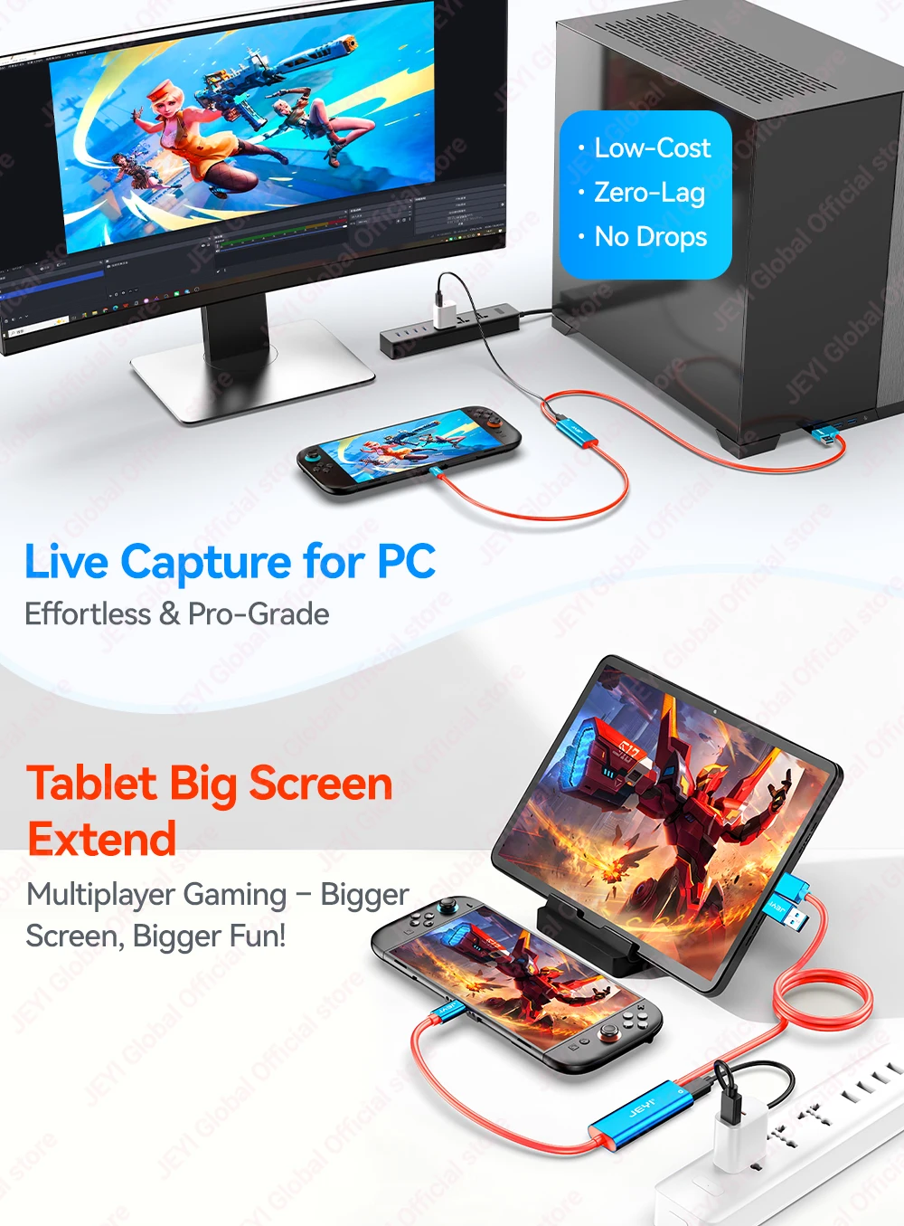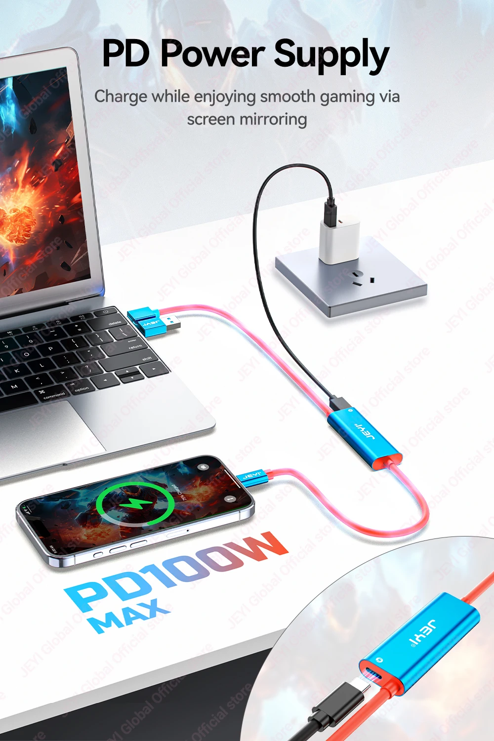 Tarjeta de captura de vídeo JEYI USB 3.0 Gen1 con 100W PD USB C a USB A/USB C en vivo y grabación de videojuegos de audio para Switch 2/1/OLED Quest 2/3 ROG portátil